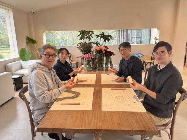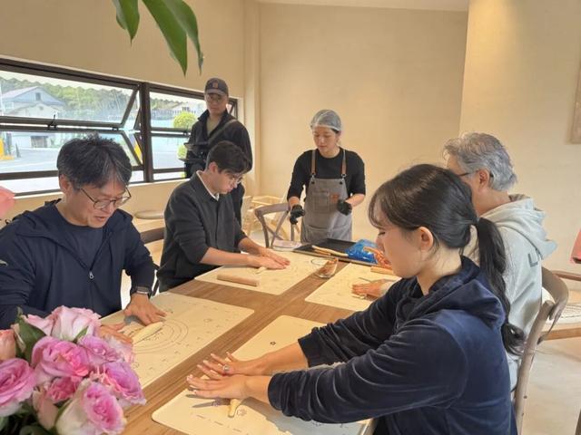 除了传统美食,池州的新业态也给外国友人带来了别样惊喜。11月11日下午,在石台县大演乡网红米莎咖啡店,四位外国友人围在窑炉旁,体验窑烤面包和手冲咖啡的制作。揉面、发酵、塑形、放入窑炉,在店员的指导下,韩东均和朋友们一步步完成面包制作,看着自己亲手做的面包在窑炉中慢慢上色、散发香气,大家满脸期待。“在这么美丽的山村里,能体验制作窑烤面包,还能喝到现磨咖啡,这种传统与现代结合的感觉太奇妙了!”白瑞禧捧着刚出炉的热面包,咬下一口,满足地眯起眼睛,“面包外酥里嫩,带着天然的麦香,搭配这里的山水风光,简直是完美的体验。”