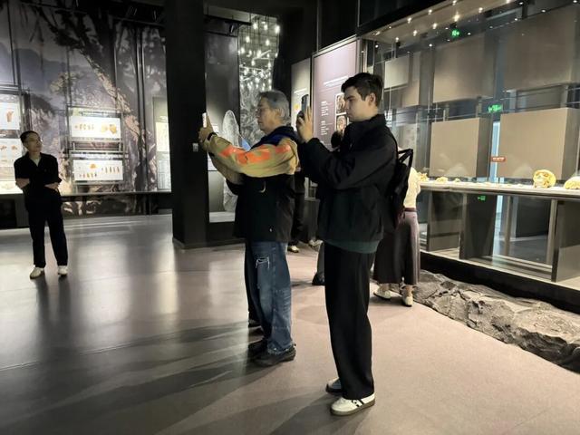 如果说古村落与民歌承载着池州的人文温度,那么考古遗址则揭开了这座城市的历史密码。11月10日,在东至县华龙洞遗址陈列馆,俄罗斯籍旅游短视频创作者飞龙被展柜中距今30万年前的古人类化石、石器吸引。他一边认真听讲解员介绍华龙洞古人类遗址的考古发现,一边拍摄短视频。“太神奇了!没想到池州有着这么悠久的历史,这些文物就像时光的钥匙,能打开了解池州古代文明的大门。”飞龙感慨道,他会把这段探秘考古经历制作成系列短视频,让更多国外网友了解池州的历史底蕴。