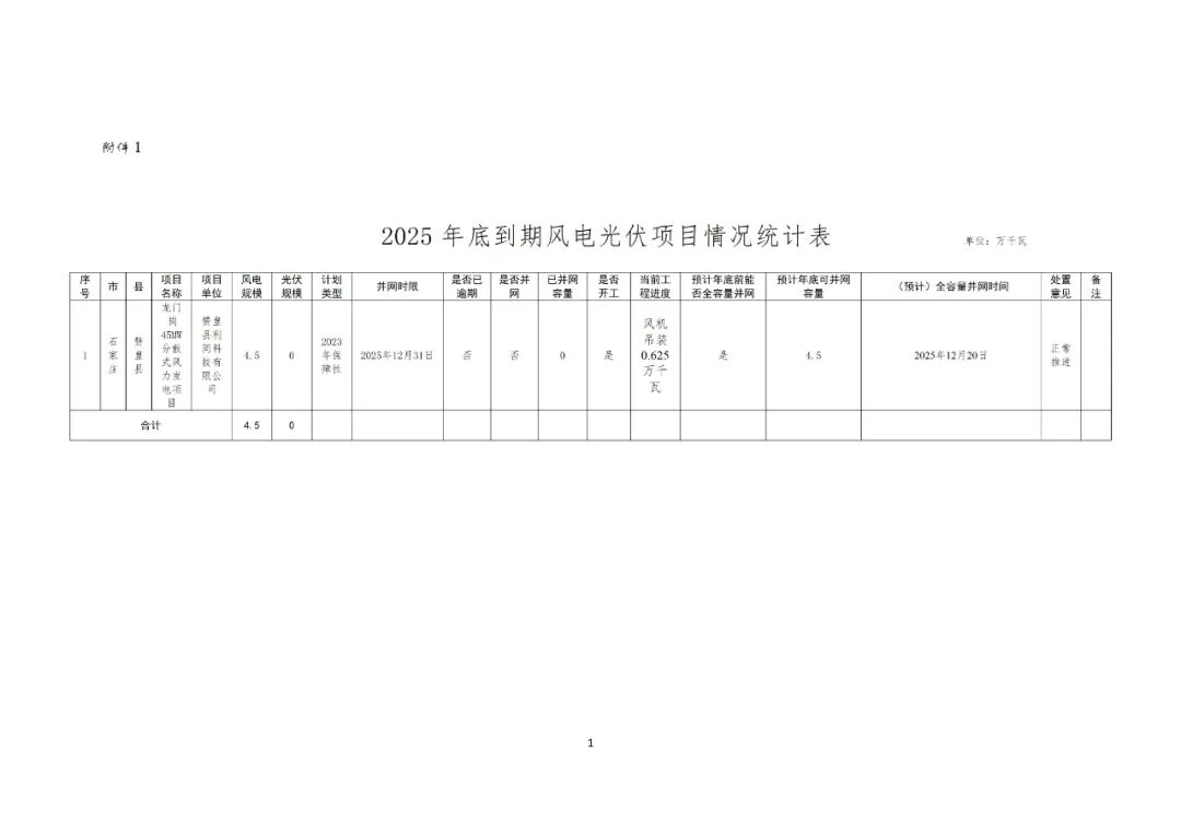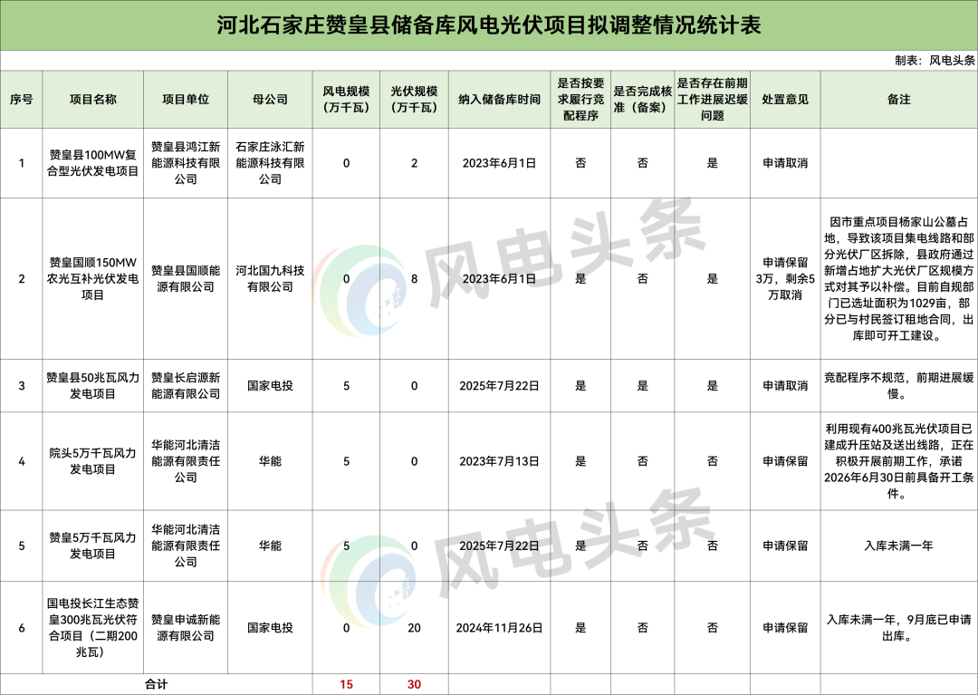 其中,河北赞皇县2025年12月底到期和储备库风电光伏项目拟调整项目共7个,规模合计49.5万千瓦,其中,风电项目19.5万千瓦,光伏项目30万千瓦。