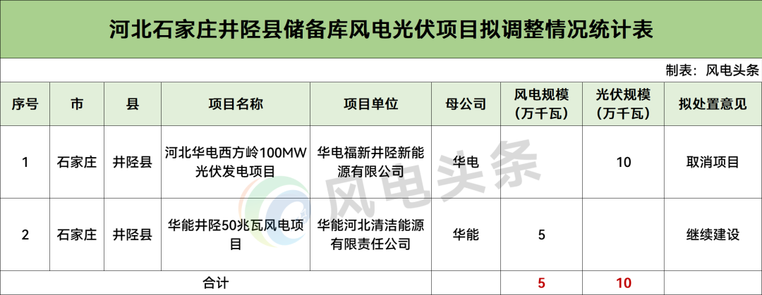 风电头条获悉,11月14日、15日,河北赞皇县发展和改革局、井陉县发展和改革局发布关于对2025年12月底到期和储备库风电光伏项目拟调整情况的公示。