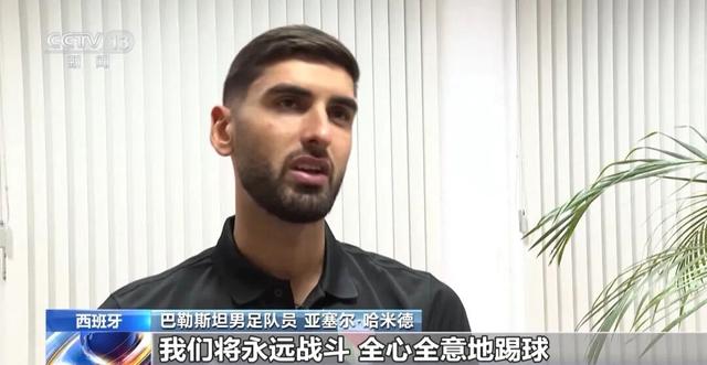 巴勒斯坦男足队员亚塞尔·哈米德:对我来说,我要尽我所能,在球场上尽我最大的努力,以最好的方式捍卫巴勒斯坦。要告诉人们,我们将永远战斗,全心全意地踢球,巴勒斯坦一直都在,永远都在。