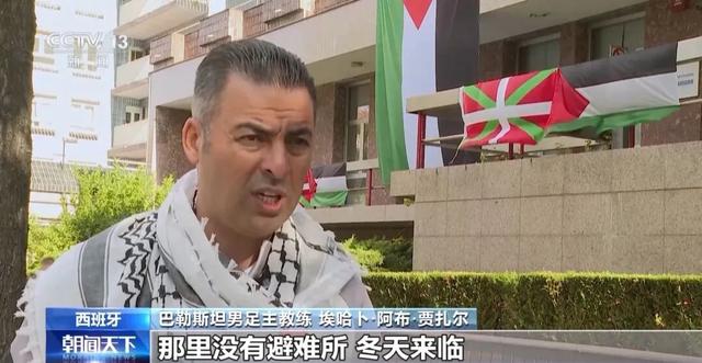 巴勒斯坦男足主教练埃哈卜·阿布·贾扎尔:如今在加沙地带还有着死亡和饥荒。那里没有避难所,冬天来临,帐篷不能够帮人们抵御无论酷暑还是严冬,所以我们向全世界呼吁,向以色列占领军施加压力,因为巴勒斯坦人民值得拥有自己的国家和有尊严的生活。