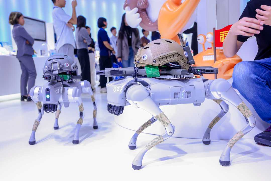 此外,无界智慧公司推出“无界Arm”机械臂及具身操控大模型-A1Model,聚焦教学、科研与工业场景打造多版本双臂智能系统。爱伦那科技公司现场展示国内首创、大众可参与的“机器狗射击竞技项目”,该项目通过自主研发的运动射击系统,将通过趣味互动激发青少年对机器人与人工智能的浓厚兴趣。