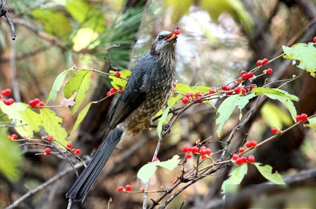 初冬的劳动公园,鸟儿在红果树上嬉戏觅食。