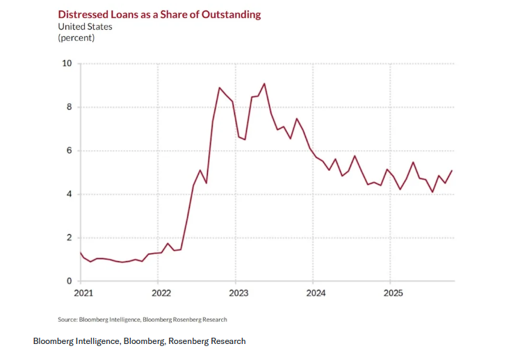 他当时是在评论次级汽车贷款机构Tricolour和汽车零部件供应商FirstBrands破产一事。而据罗森博格研究公司(RosenbergResearch)称,有迹象表明,戴蒙所暗示的问题已经更为普遍。