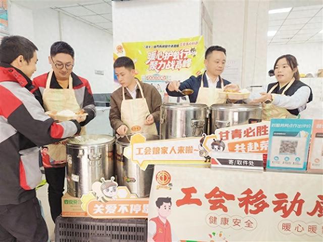 “目前每个快递员一天收派件约百单,比平时多了百分之三四十的工作量,确实忙碌,但回来喝到热乎汤、吃到热乎饭,浑身都暖和了,特别感谢顺丰工会和市总工会的贴心关怀。”快递员小李道出了大家共同的心声。这份舌尖上的温暖,有效地缓解了他们的疲惫,转化为继续投入“战斗”的动力。