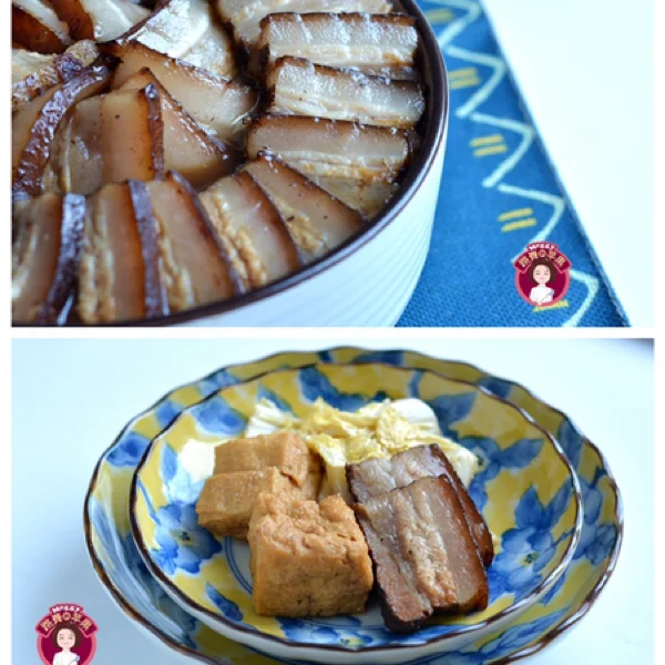 材料:五花肉1条,油豆腐1碗,白菜数片