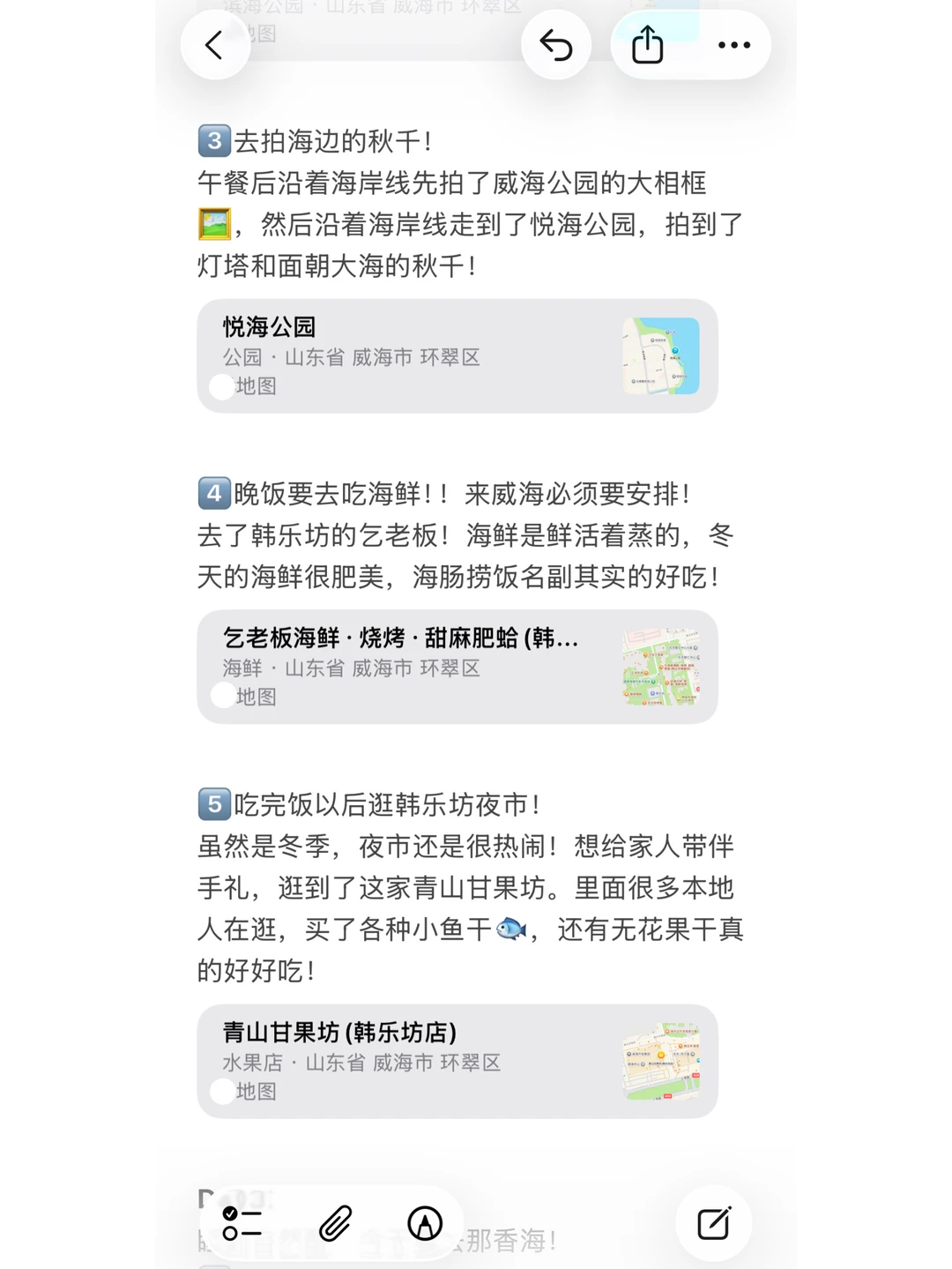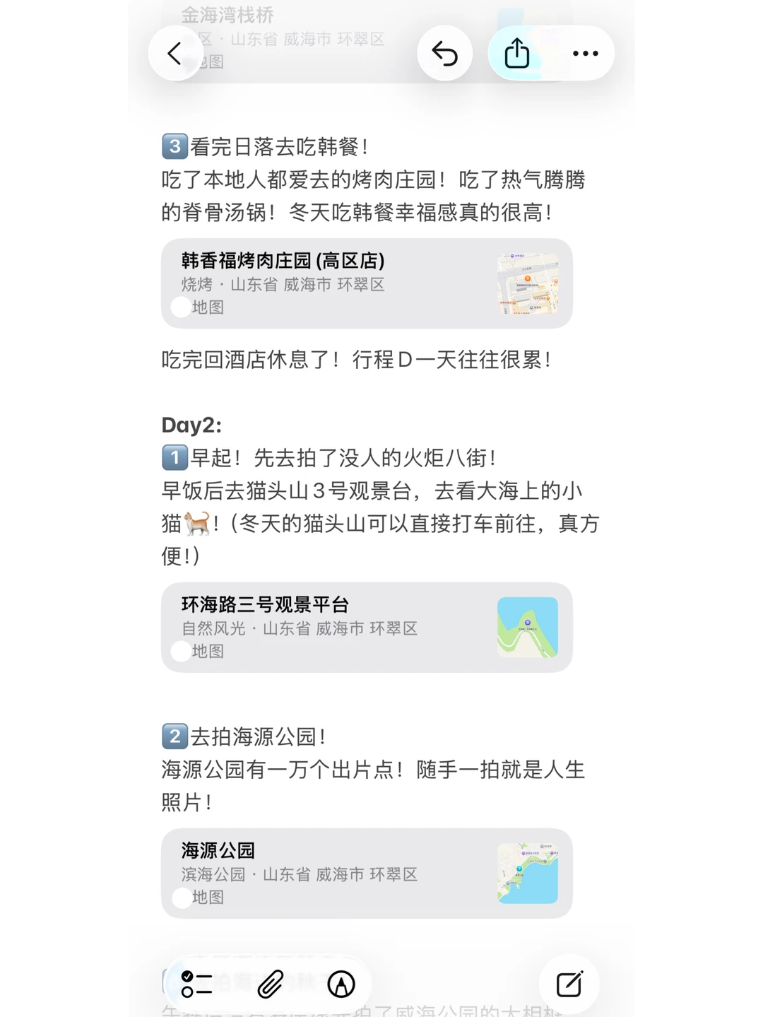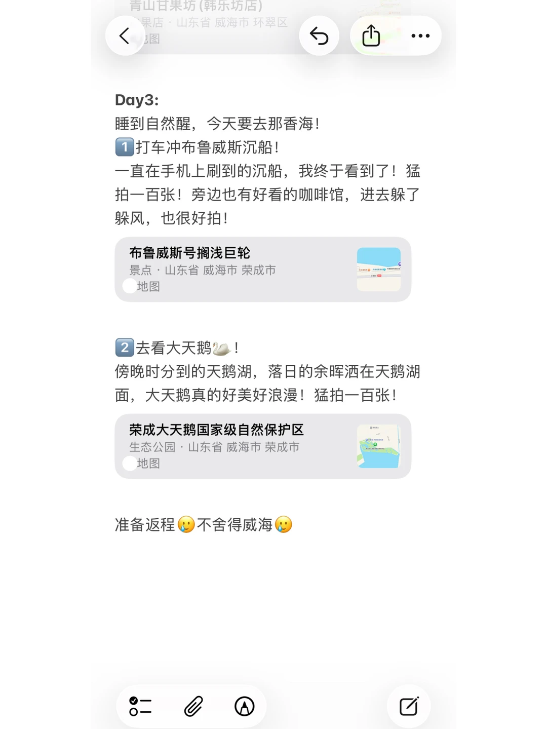今天威海迎来了今年的初雪!但是只飘了几片小雪花(不建议来~),但是这也印证着威海的冬天真的来啦!大雪🌨️就在后面啦!到时候我挨个踢! 本地博主给大家整理了冬天来威海详细的游玩线路,记得收藏呀😊 冬天来威海3天2晚是比较合适的!一般是2天打卡市里的景点,1天去那香海看布鲁威斯沉船🚢和大天鹅🦢!详细攻略写好了,姐妹们按行程不踩雷! 记得来威海一定要多穿!羽绒服是基本配备,围巾帽子手套都是出片必备! 有问题咱们平论区见!