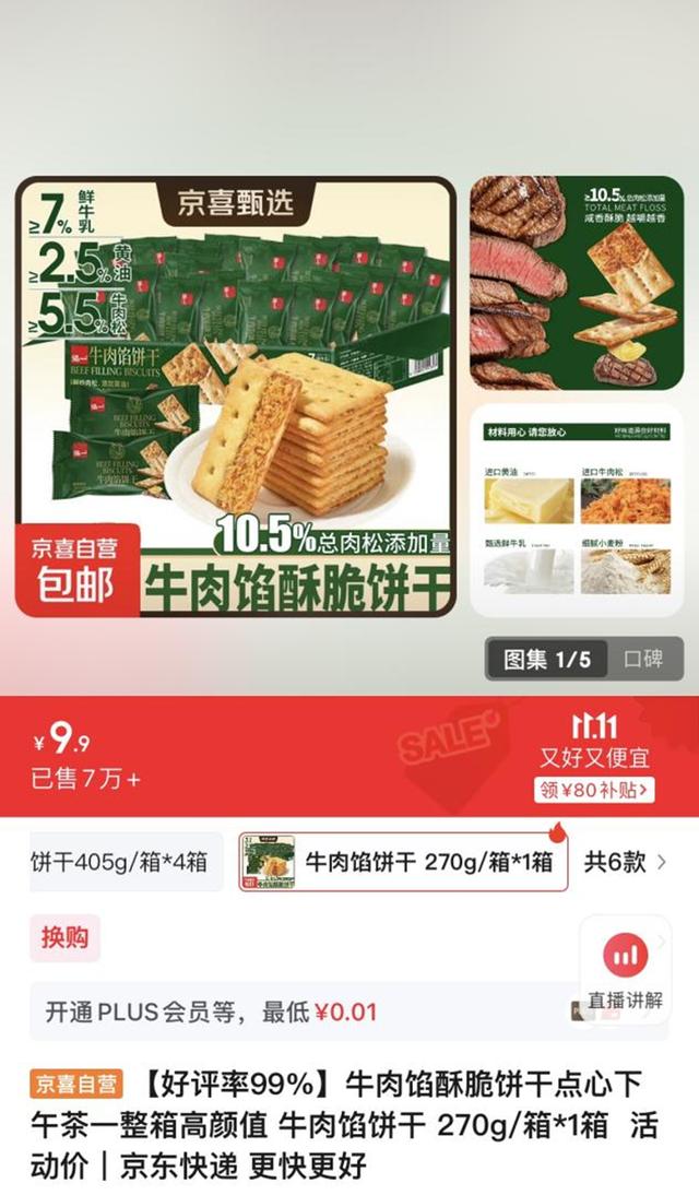 创立于1993年的泓一品牌以往主要布局线下市场。基于京喜自营的线上消费洞察,品牌创新推出牛肉馅酥脆饼干,10月17日四小时内即售出1万单。该产品凭借良好口感和精致外观,结合京喜自营“源头直采、工厂直供”模式,减少中间流通环节,以高性价比直达全国用户,既展现了老牌企业的创新力,也体现出京喜自营对新品推广的赋能效果。