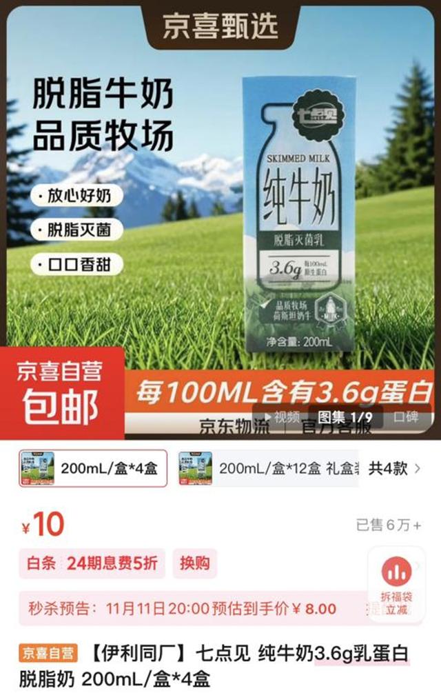 京喜自营通过深耕产业带,为消费者带来品质与价格兼优的选择。以明星产品“七点见”纯牛奶为例,它产自知名品牌代工厂,乳蛋白含量能达到3.6g/100ml的高标准。11.11期间,其销量持续领跑。上市仅三个月,累计销量已突破43万盒,并获得98%的真实好评,印证了“优质优价”的市场认可度。