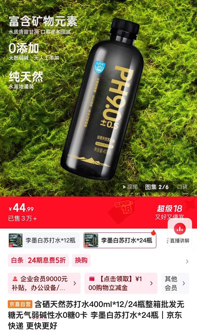 此外,京喜自营精准捕捉消费者对优质日常饮用水的需求,针对饮用水行业信息不透明、消费者难以辨别水质的痛点,引入李墨白苏打水。该产品水源来自五大连池产区,水质天然优质、口感佳,包装设计兼具高级感。在京喜自营的品质把控与渠道助力下,11.11期间售出超6万瓶,产品入驻不到5个月销量已近60万瓶,为更多消费者带来了高性价比的品质饮水选择。