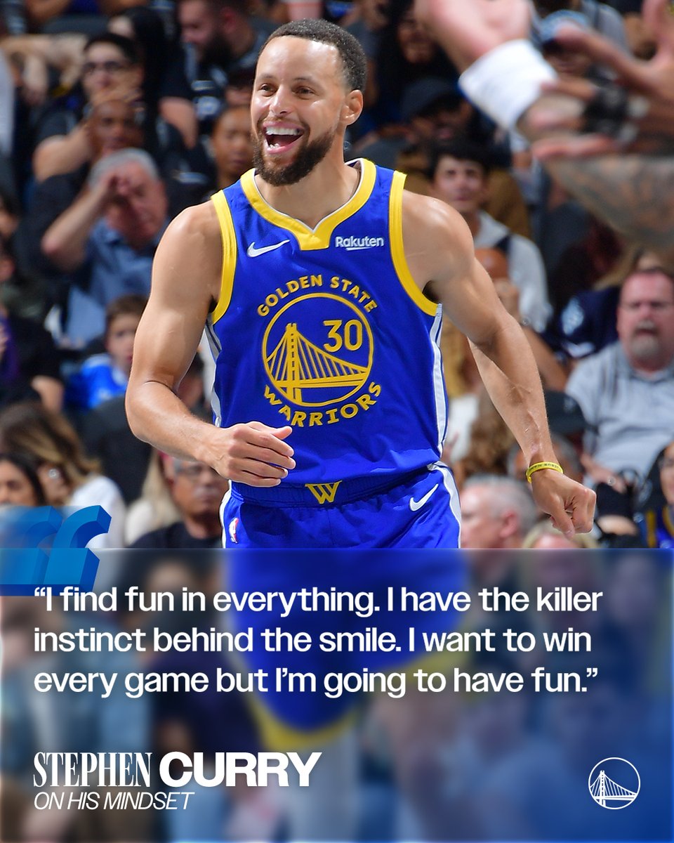 勇士官方账号报道。带着微笑送上得分表演。(viaMindtheGamePodcast)