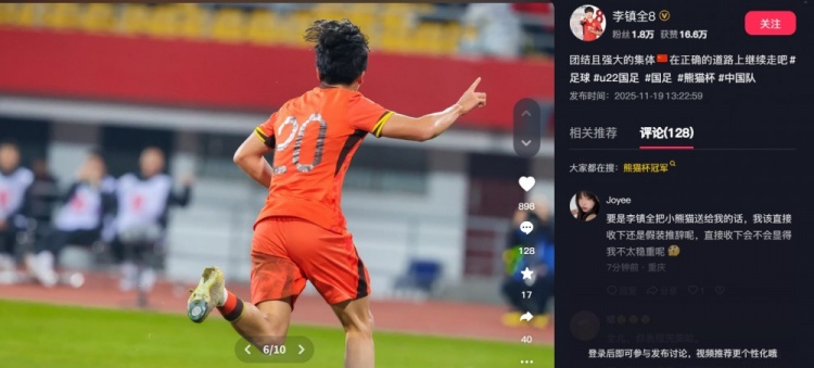 今天,李镇全在个人社媒总结熊猫杯,他写道:团结且强大的集体,在正确的道路上继续走吧。