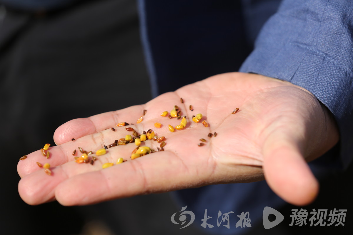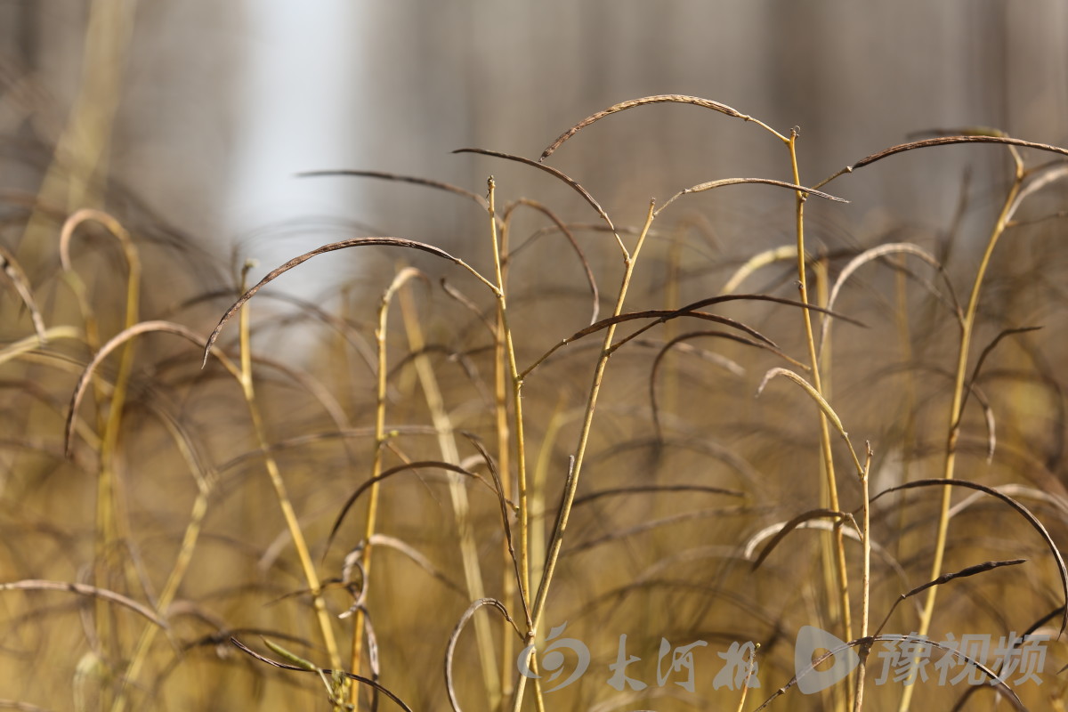 11月19日上午,大河报·豫视频记者跟随王书伟来到贾鲁河西华县聂堆段,在一片广袤的林地里,见到了成熟结荚的决明子。记者看到,初冬季节的决明子呈灰褐色,每棵上面长出细长的果荚,类似于地里种的绿豆,但要比绿豆荚小很多。剥开后,里面是黄褐色或黑色的决明子粒。“野生决明子比较罕见,它和人工种植的决明子有明显区别,人工种植的果粒比较大,但是野生的非常小,有的甚至只比芝麻粒稍大一些。”王书伟说。