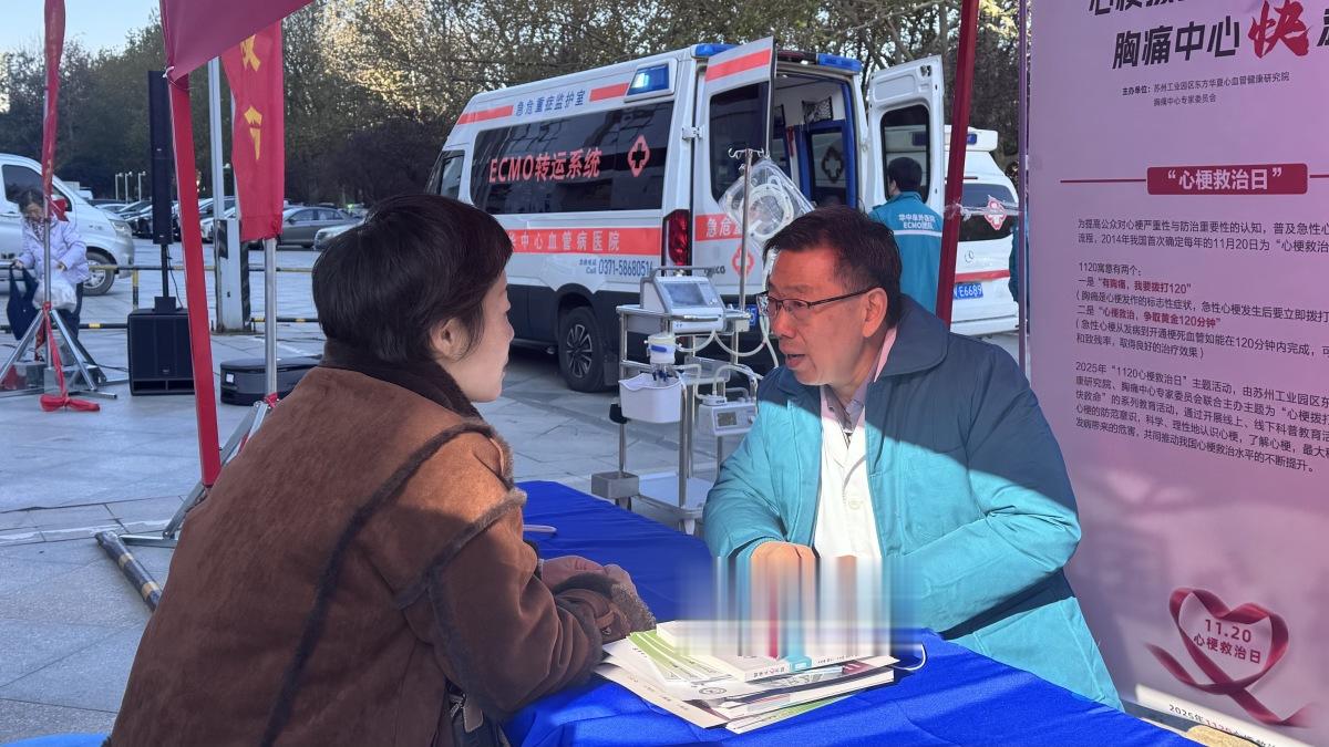 活动现场,阜外华中心血管病医院高传玉教授讲解了“1120”的多重内涵:“第一个‘120’是指一旦出现肚脐以上、鼻子以下部位不适,要立即拨打120;第二个‘120’是指黄金救治时间为120分钟。”