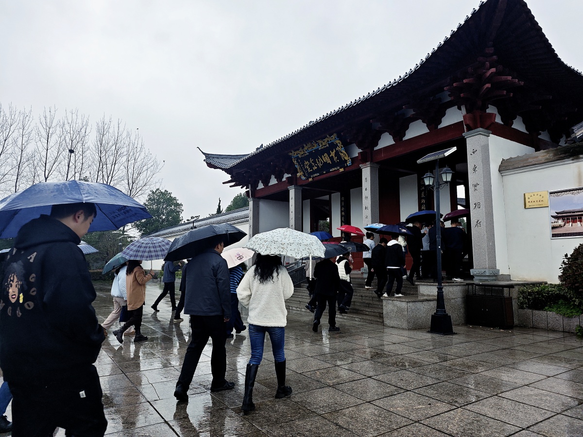 前方,便见古黄国历史文化陈列馆的飞檐在雨幕中优雅舒展。这座仿唐风格的建筑,其建材皆从福建远道运来。