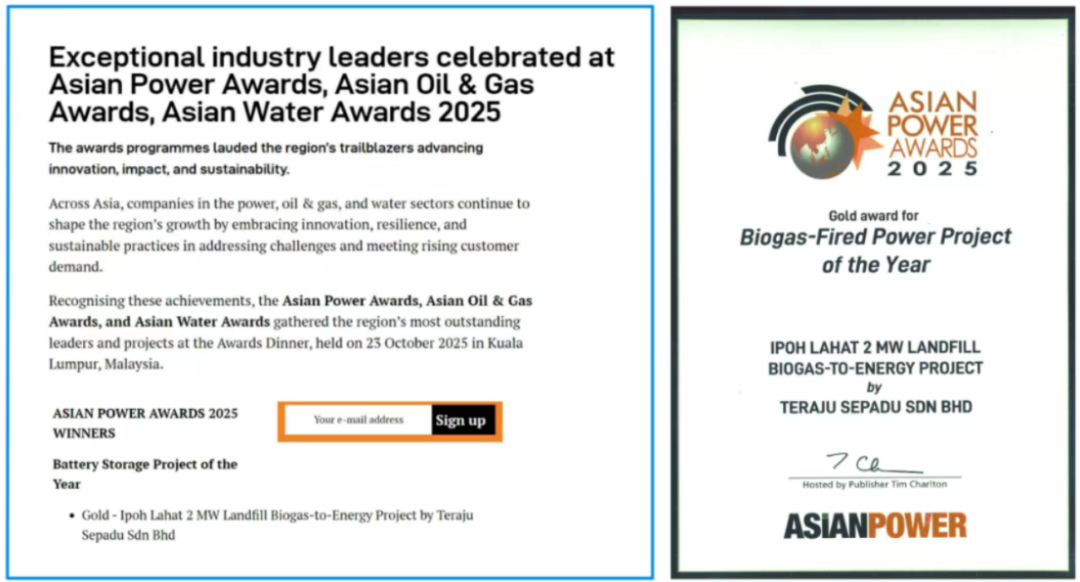 业绩承压,百川要破局转型,于是将目光投向海外,借助电价市场化程度高的地区,快速落地沼气与光伏项目。从哥伦比亚科尔多瓦省的光伏电站,到马来西亚怡保的2MW沼气项目(荣获2025年亚洲电力奖“年度沼气发电项目金奖”),百川的出海步伐稳健而有力。