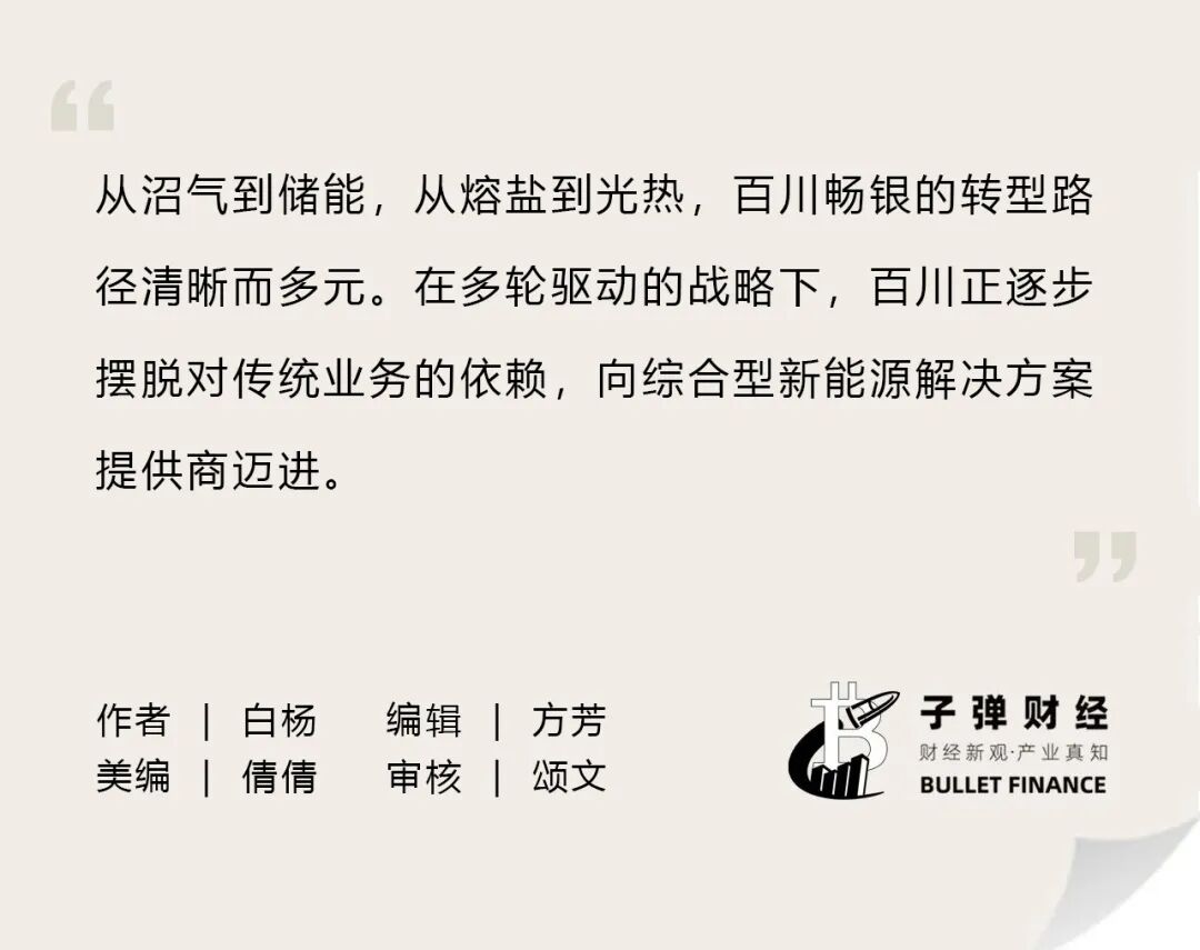 从沼气到储能,从熔盐到光热,百川畅银的转型路径清晰而多元。在多轮驱动的战略下,百川正逐步摆脱对传统业务的依赖,向综合型新能源解决方案提供商迈进。