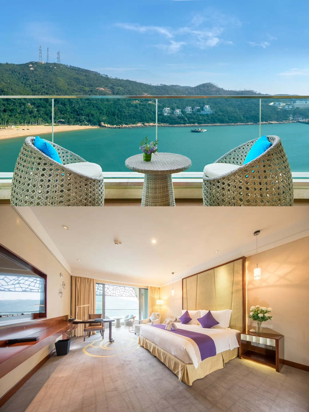 ✨一定要去楼下的南沙湾钻石沙滩逛逛,沙子又细又软,迎着微风听着海浪声,非常惬意。也可以在辽阔的大海上体验下刺激的香蕉船、摩托艇等水上项目,乐趣十足!
