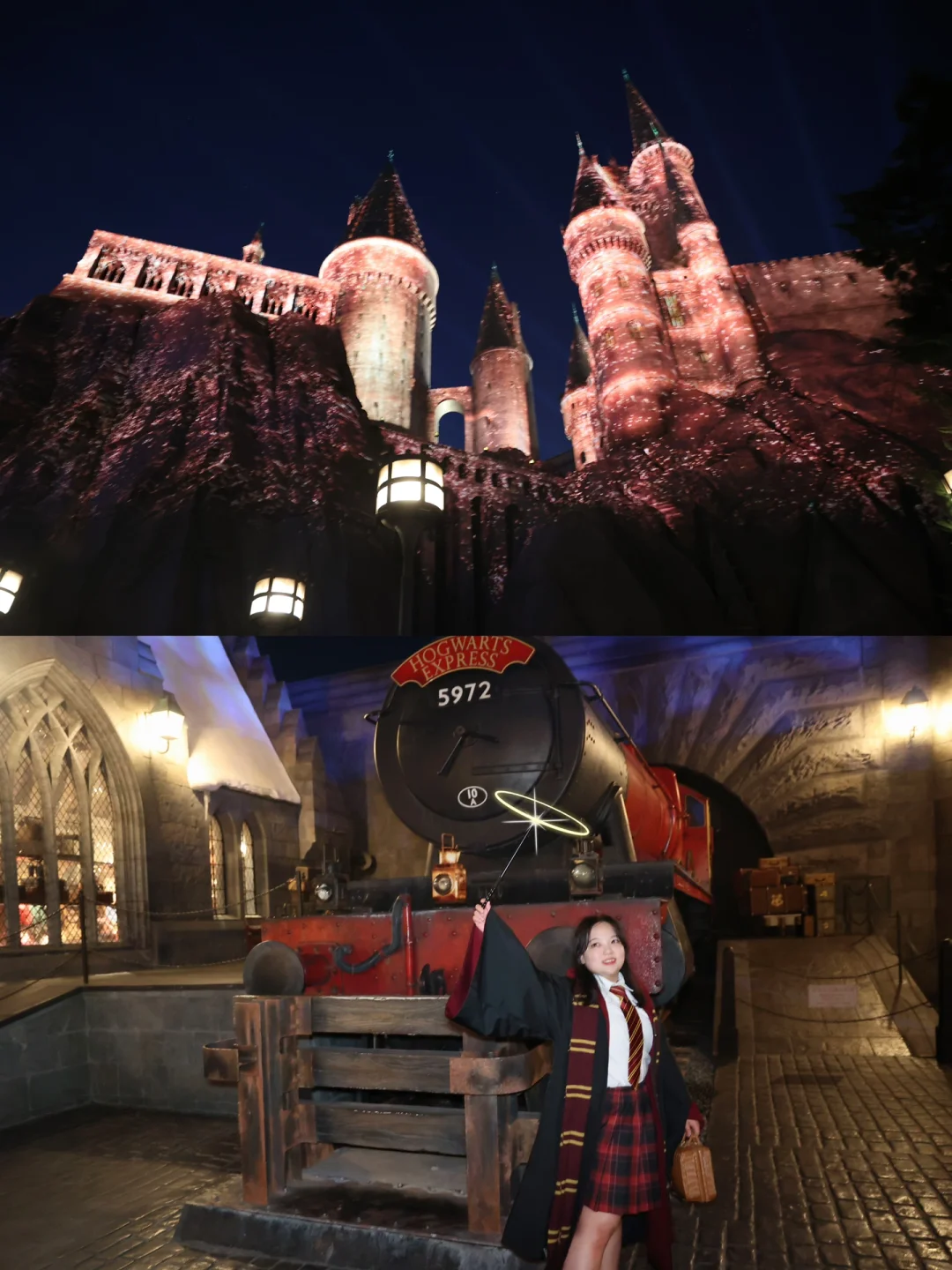 ✅拍照把重点多放在白天刚出场的时候,精神好、游客少,光线温和且充足,秒get大片。晚上看完霍格沃茨™城堡夜间魔法庆典可以再补两张。但根据我的经验晚上比较疲惫,状态和光线都不及白天好。