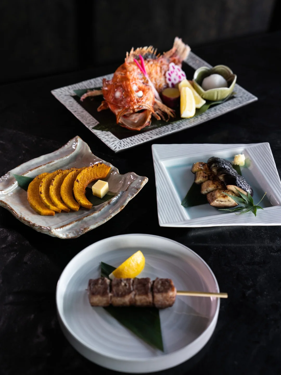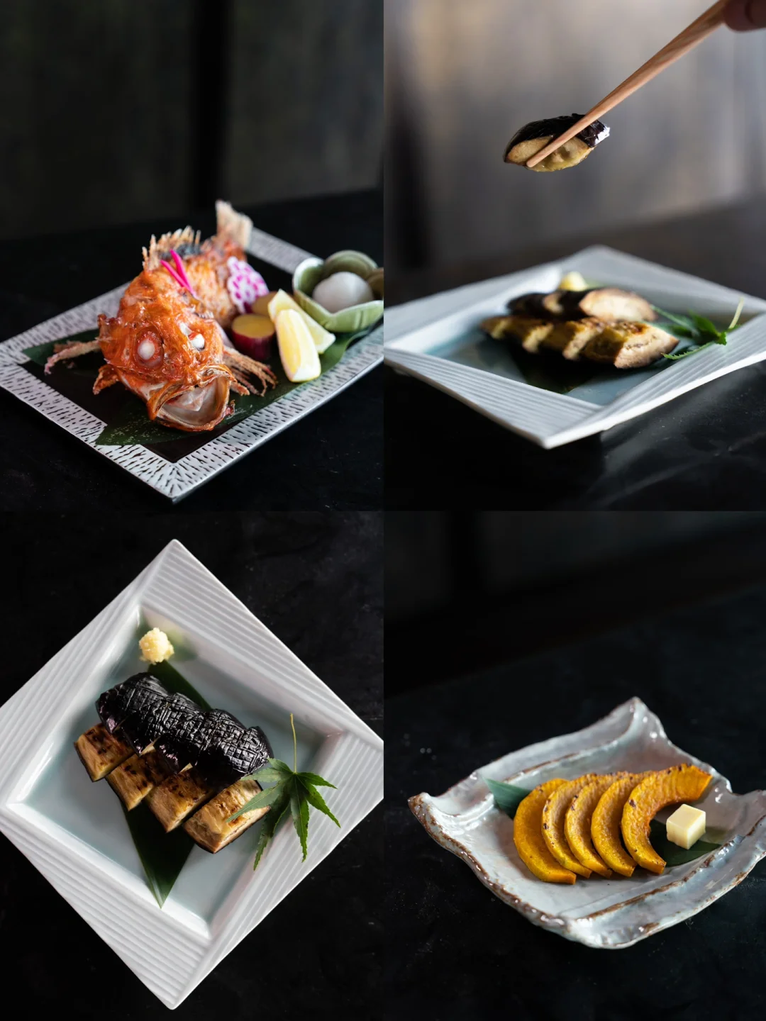 烤茄子外表色泽鲜明,皮烧至脆身,而茄子肉质鲜香软滑,上桌时搭配姜茸,酸辣的味道能更好地刺激味蕾。