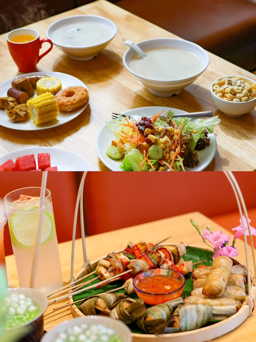 餐厅紧临星乐度露营小镇,主打东南亚菜式:泰式海鲜小火锅,荷叶包鸡,炸春圈,还有丰富的饮料🥤,甜品🍧选择。