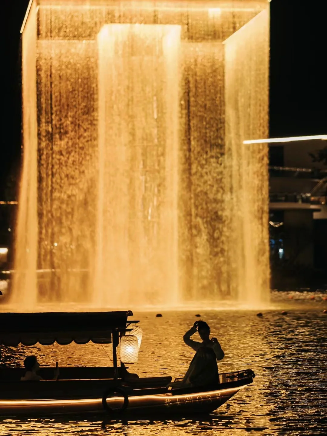 🌟在夜幕下,金庸馆等著名景点被灯光勾勒出迷人的光影。换上古风汉服,提着鱼灯,乘坐游船,荡舟在悬空金阁前的湖面上,古风古韵,打卡拍照自成一道温婉的风景。