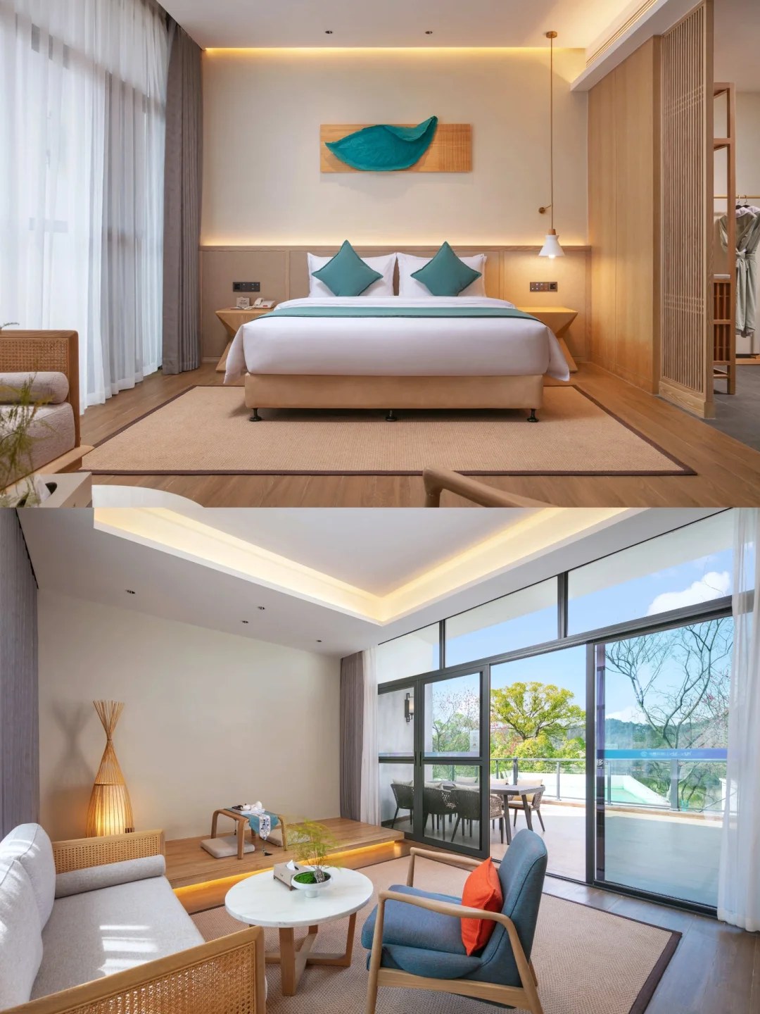 茶圣精舍,有客房背靠茶园、古树环绕,仿佛神仙境界。有早餐厅和游泳池可以享受。体验清香怡人的名茶,领略古色古香的文化底蕴。入户景区酒店才知道可以免景区门票呢~