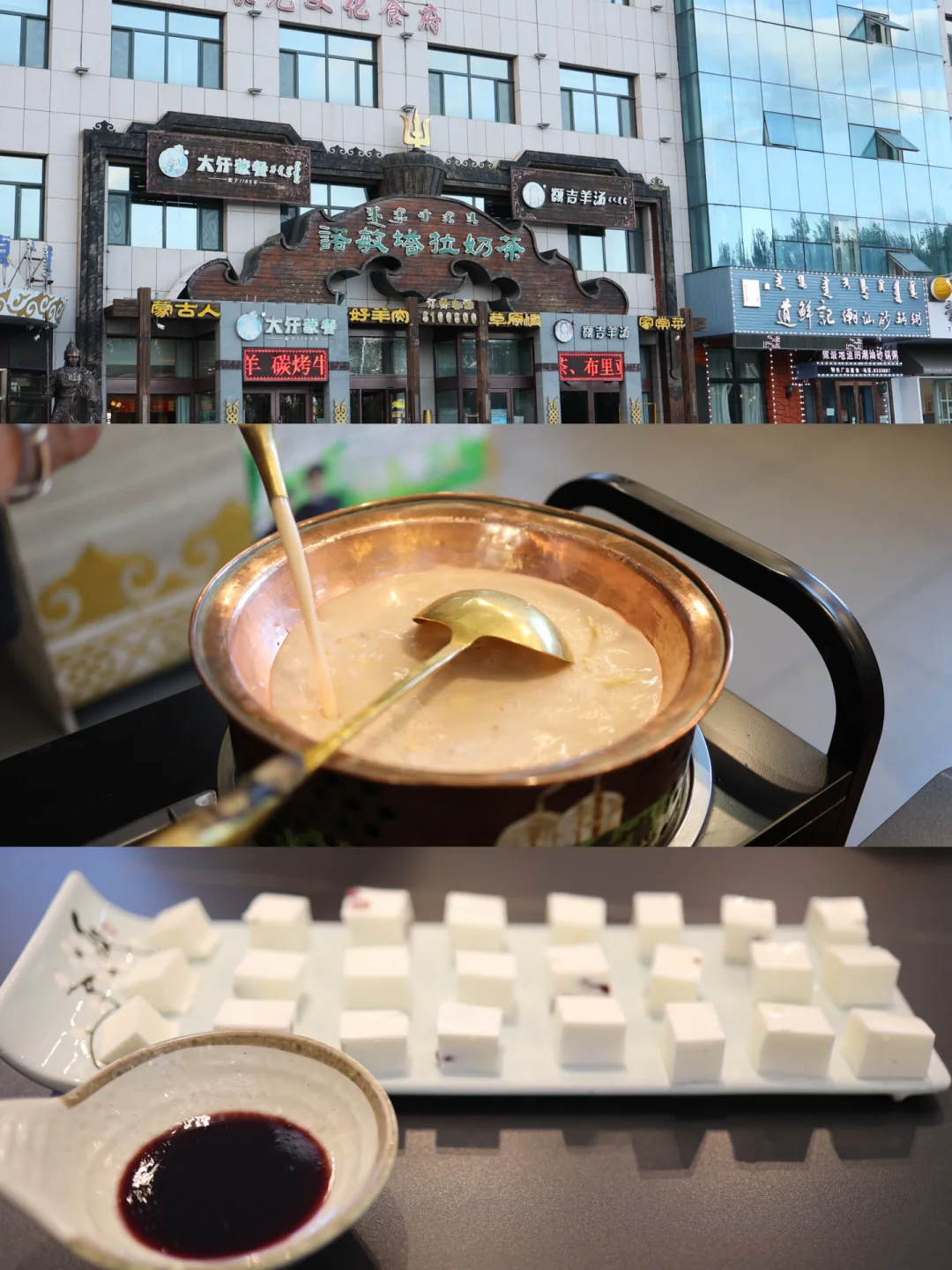 蒙古锅茶独具蒙古特色,用铜锅将奶茶煮开,搭配上牛肉粒,奶皮,炒米等配料,奶香浓郁别具一格。
