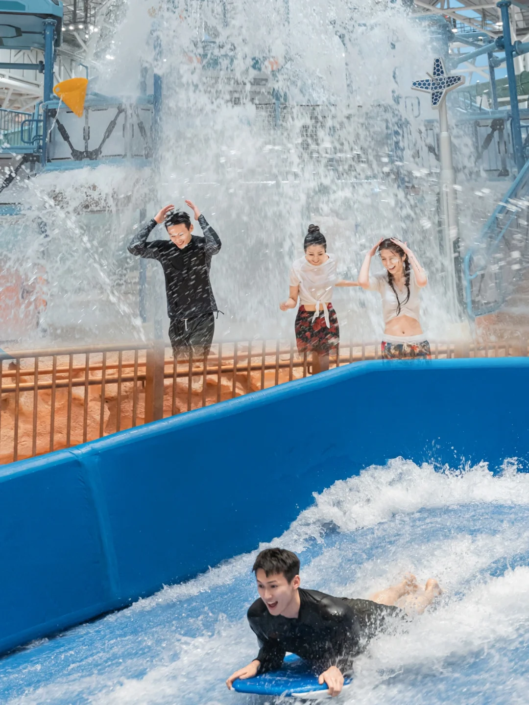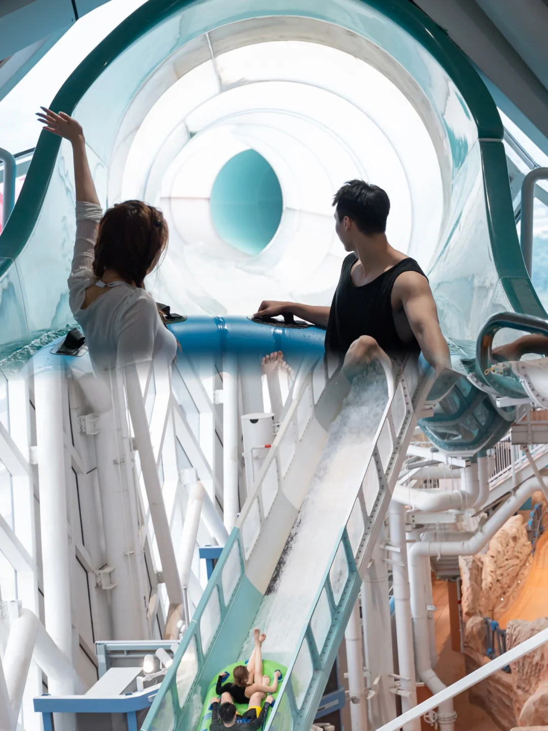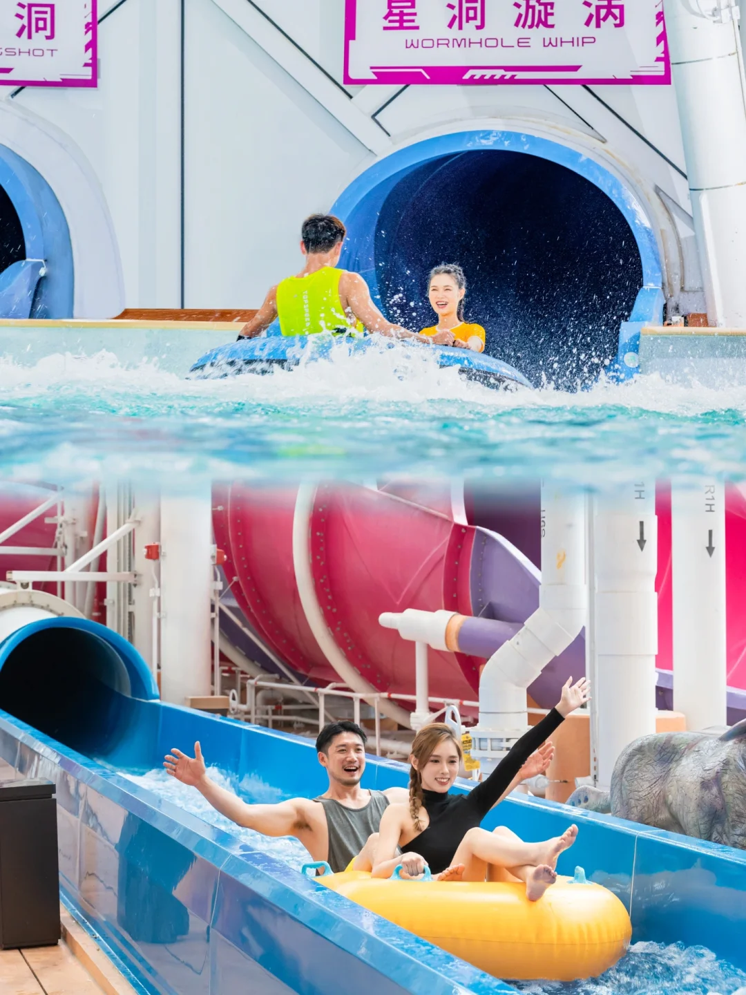 水上过山车,模拟冲浪,火星造浪池、太空控制台🧑等16项娱乐设施,满足不同难度不同刺激程度的玩水需求。我个人比较喜欢刺激点的项目,特别想尝试极限逃生舱,15米自由落体垂直俯衝的离心力;还想体验犹如水上过山车般穿梭在高峰和低谷间的光速飞车。