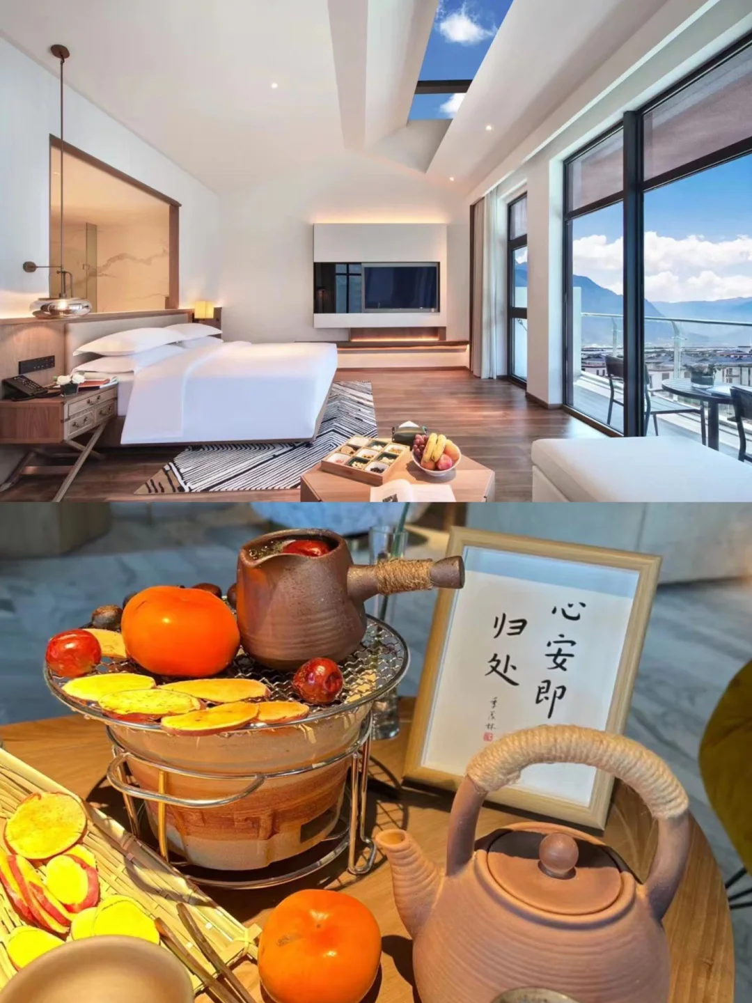 住宿🏘️:入住位于巴宜区的林芝悦皇冠酒店。这里环境清幽、空气清新让你远离城市的喧嚣和浮躁。酒店设计豪华舒适,客房内配有落地窗,让你能够尽情欣赏山川河流的壮美景色。闲暇之余,一边看着远处的雪山美景,一边享受围炉煮茶悠然自得轻松惬意。