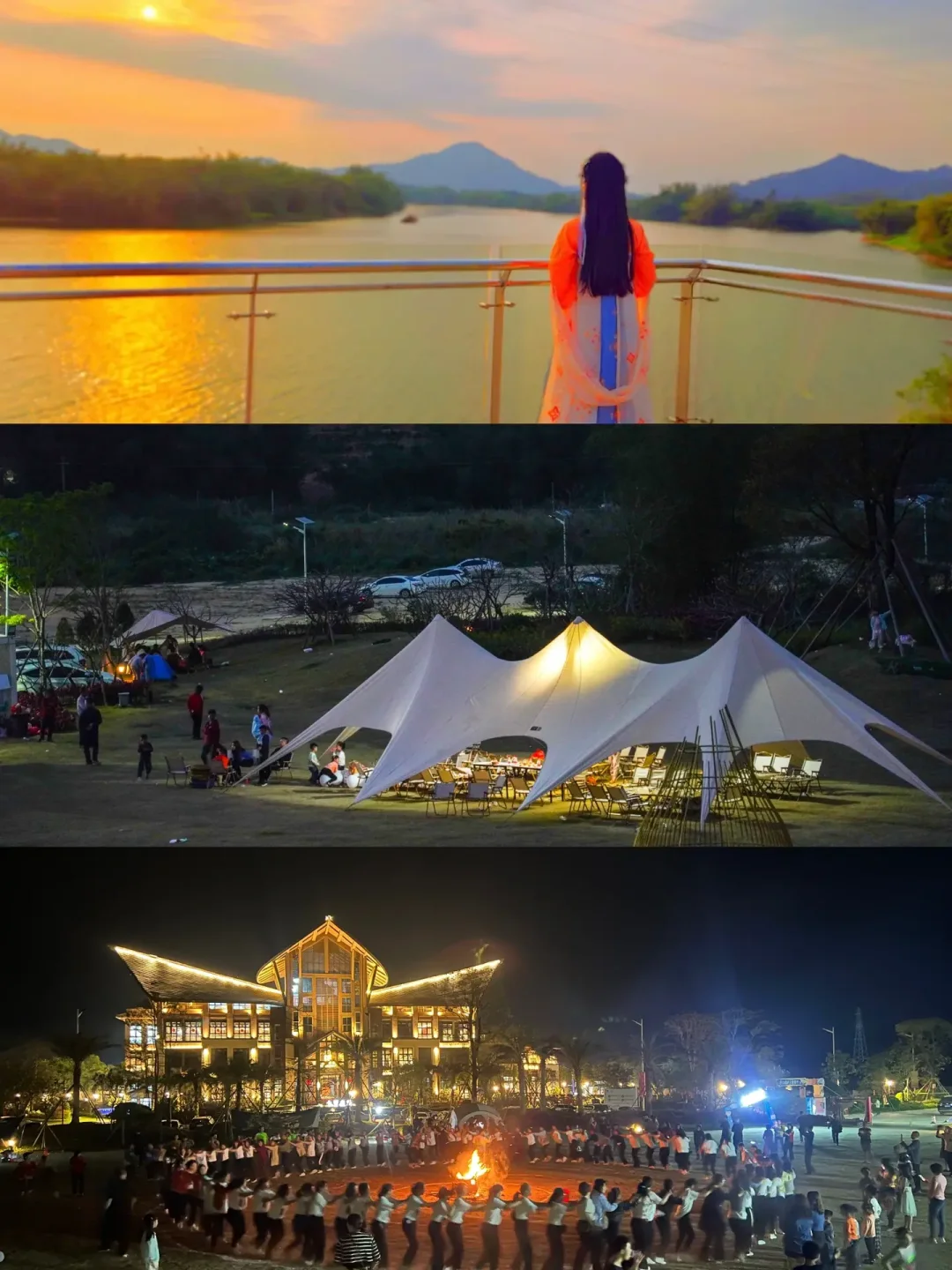 🏕️日落时分可以在酒店外的大草坪散步,也可以免费租用酒店的自行车来一场滨江骑行,还可以免费租一套酒店提供的汉服与夕阳🌇来个合照。远处是青山环绕,近处是绿草清香,在这里露营、烧烤,加入一场欢乐的篝火晚会,处处皆是轻松欢乐的气息。