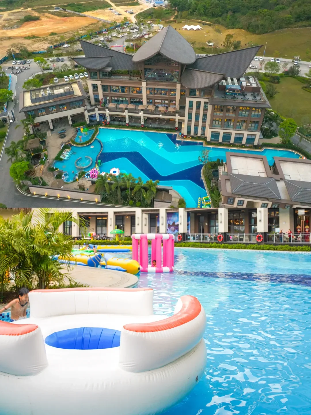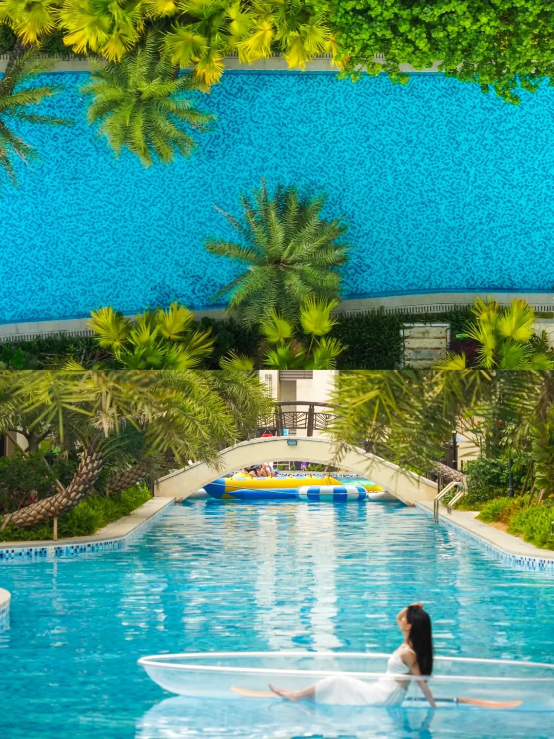 🛶走出客房即可步入超长网红夏威夷泳道。广东的夏天就快到了,在泳池里撒欢,还有免费的玻璃船、小黄鸭,香蕉船等道具,好玩有趣还能拍出美美的照片📷。