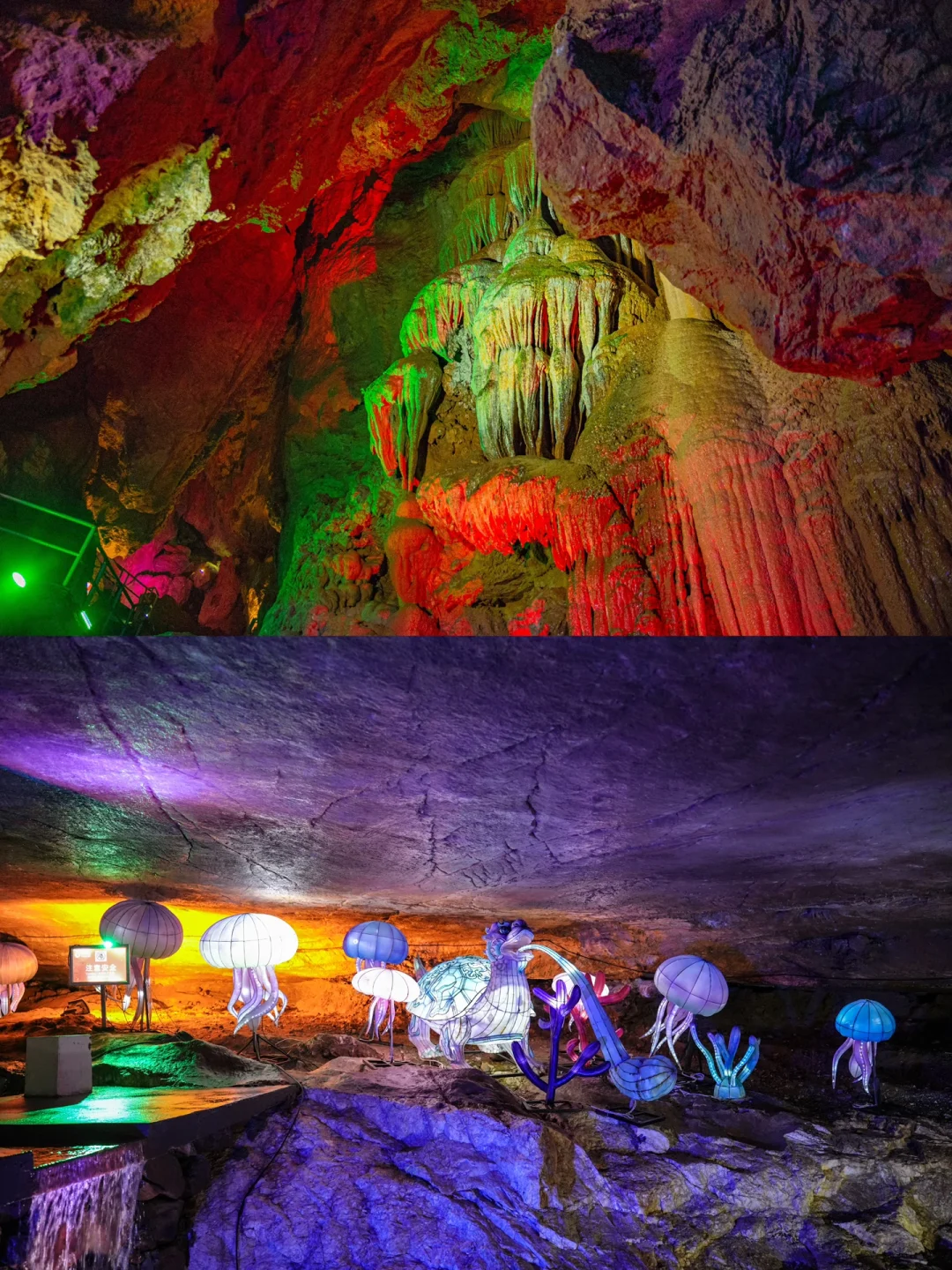 ✅天子洞:华丽的喀斯特岩溶洞窟,通过灯光打在钟乳石上展现出奇特美景。