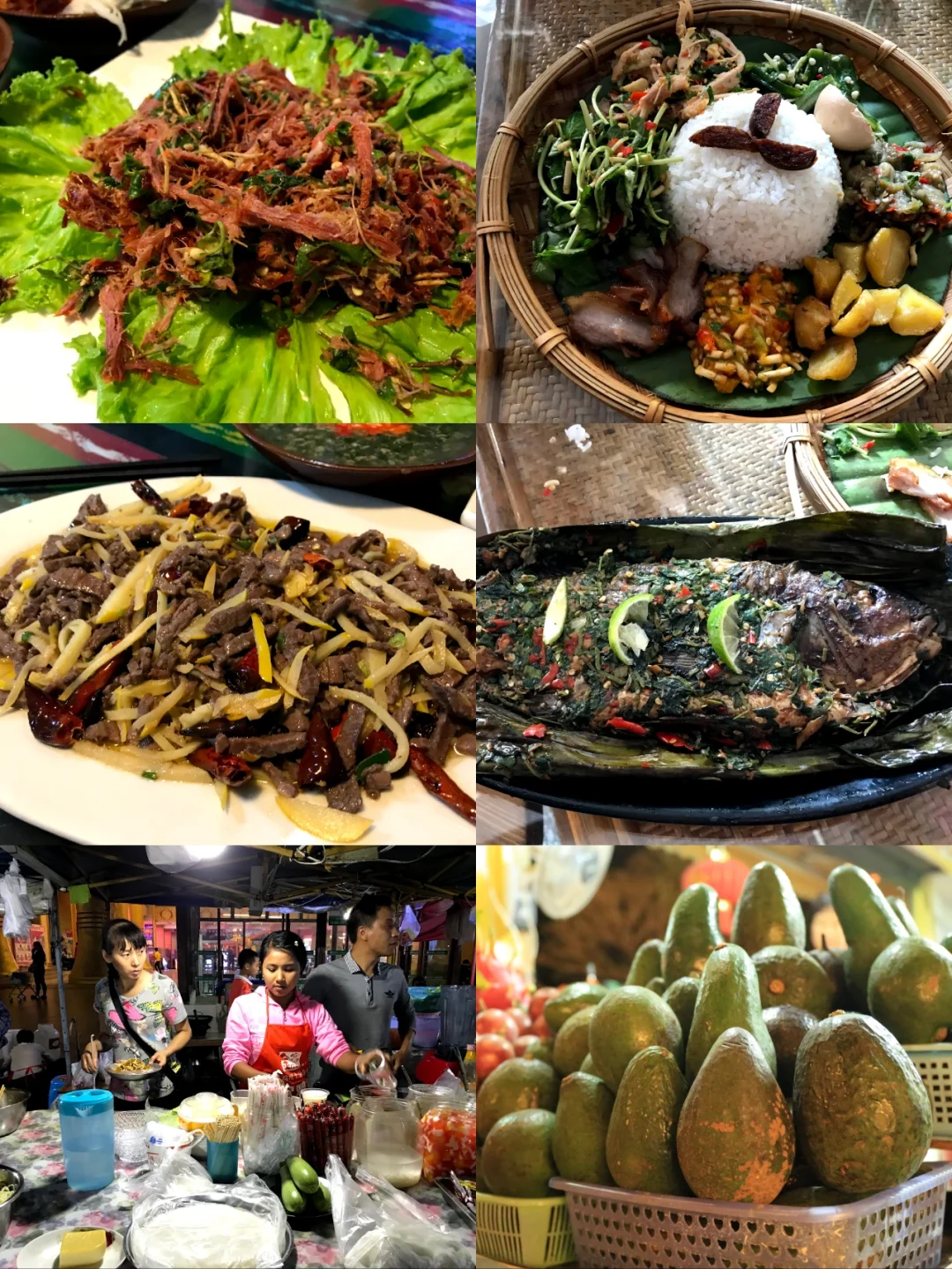 👉德宏必试美食推荐:撒苤,牛干巴,鬼鸡,竹筒饭,过手米线,甩粑粑,酸木瓜烤鱼,泡鲁达,牛油果🥑奶昔!