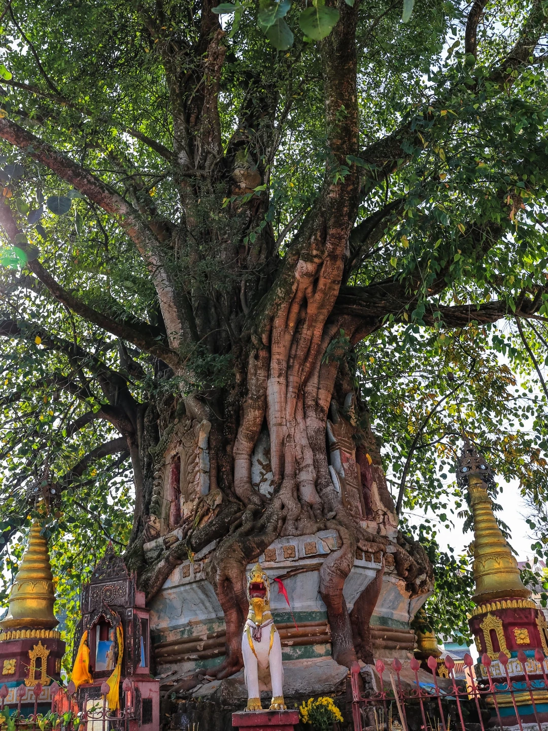 🌟树包塔:一颗榕树从塔缝中长出,将傣式佛塔紧紧包裹住,形成树包着塔,塔拥着树,树塔一体的奇妙组合。