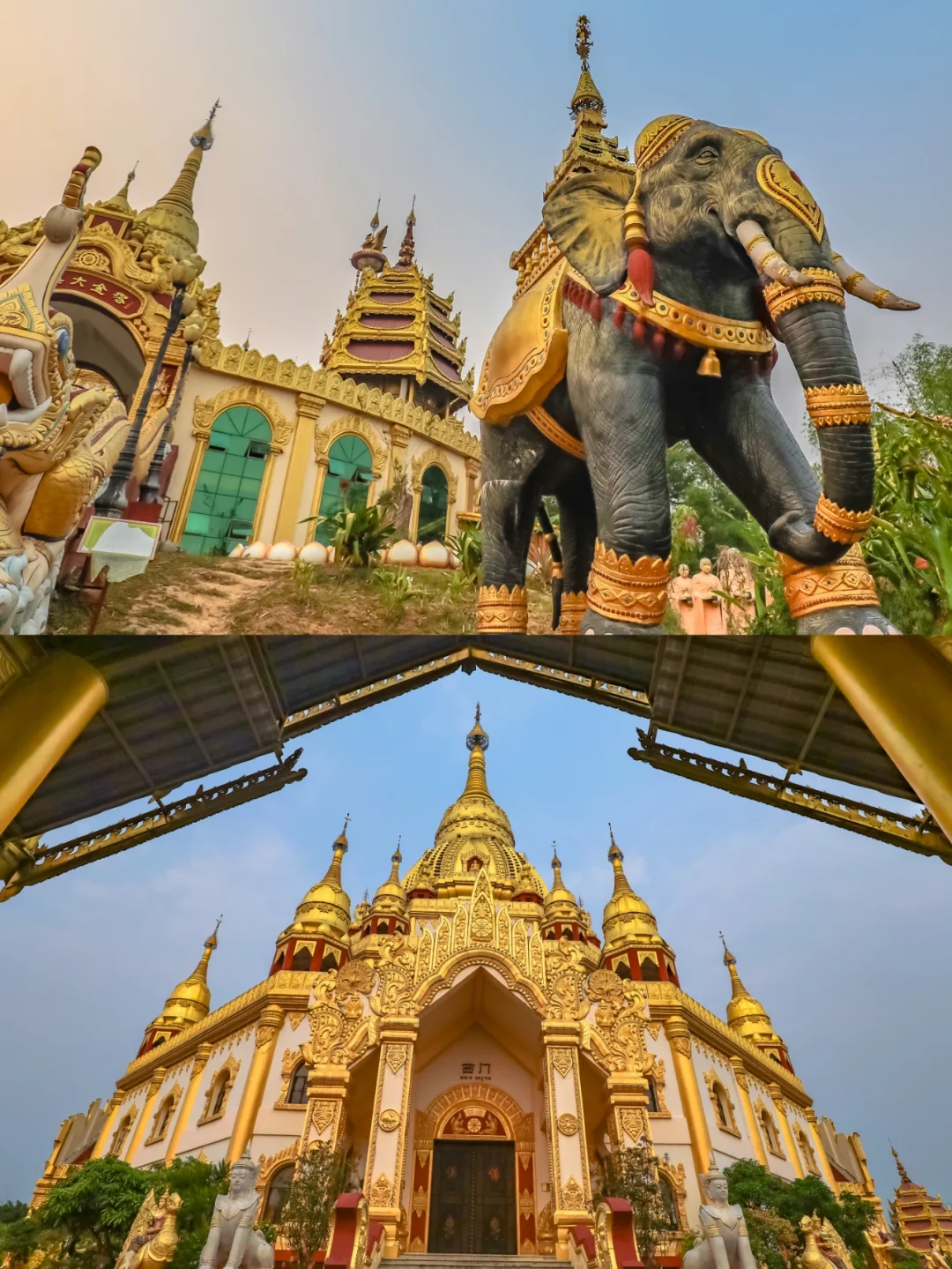 🌟勐焕大金塔:推荐晚上到大金塔看夜景,灯光将塔身承托得金黄灿灿,仿佛空中悬挂着梦幻的宫殿。与大金塔隔山呼应的是远处的大银塔。