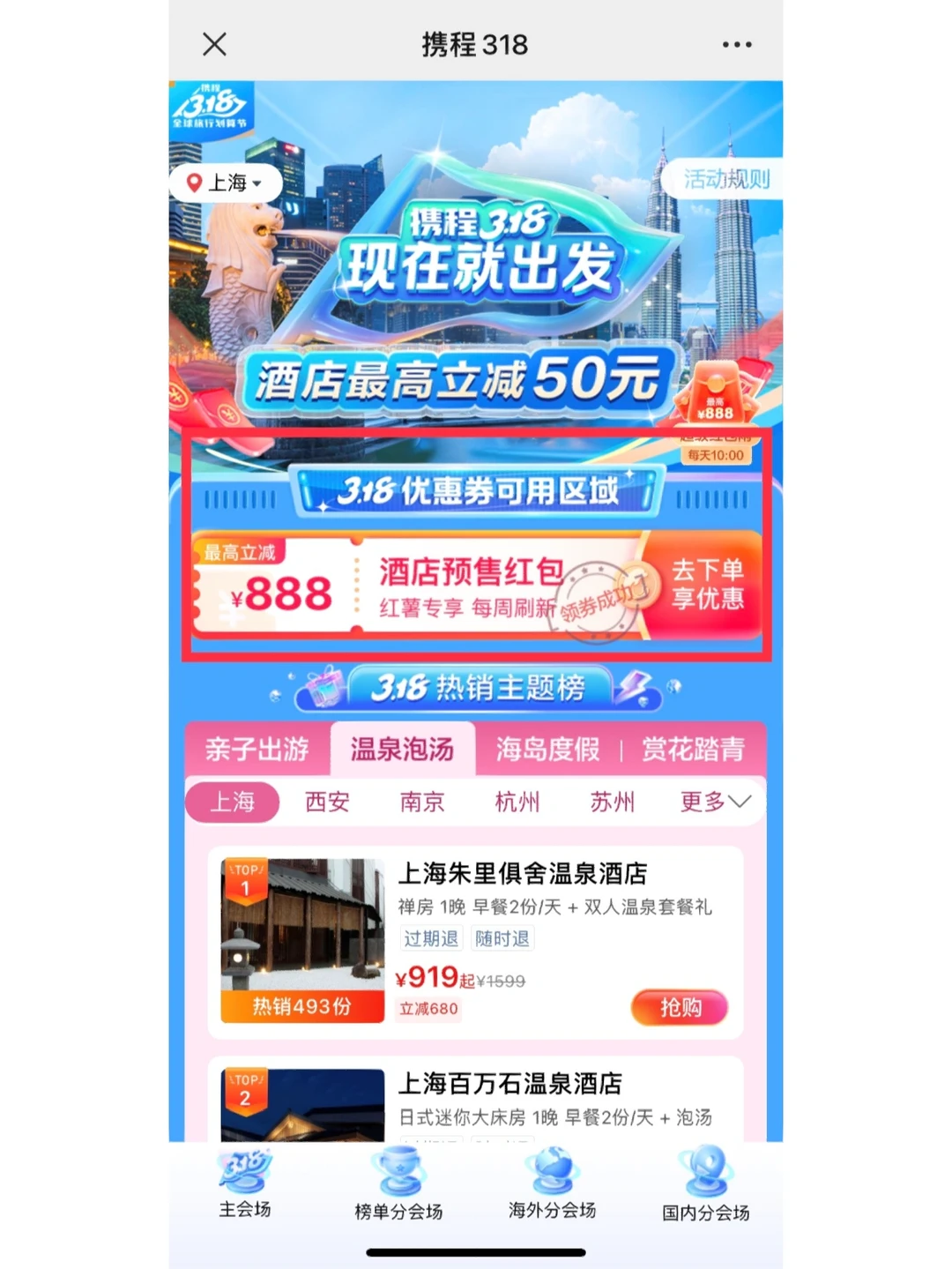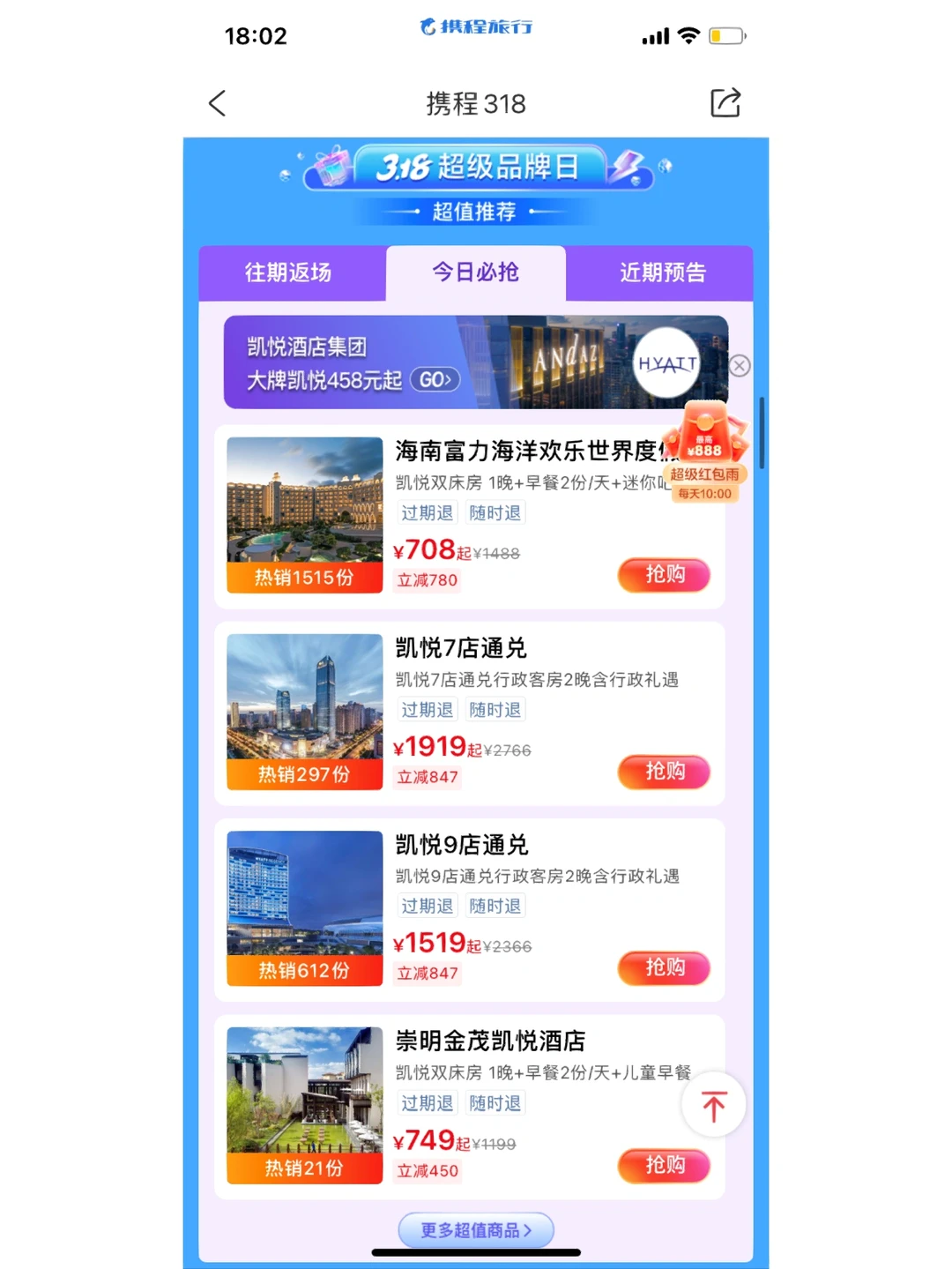×记住不要直接在app的主页直接搜索酒店,普通会场的优惠券是需要3人助力才能膨胀到499-50的,红薯的专属优惠就很直给!!318折扣+红薯专享券,就是可以无脑冲!囤的房券不约可退、过期随时退!