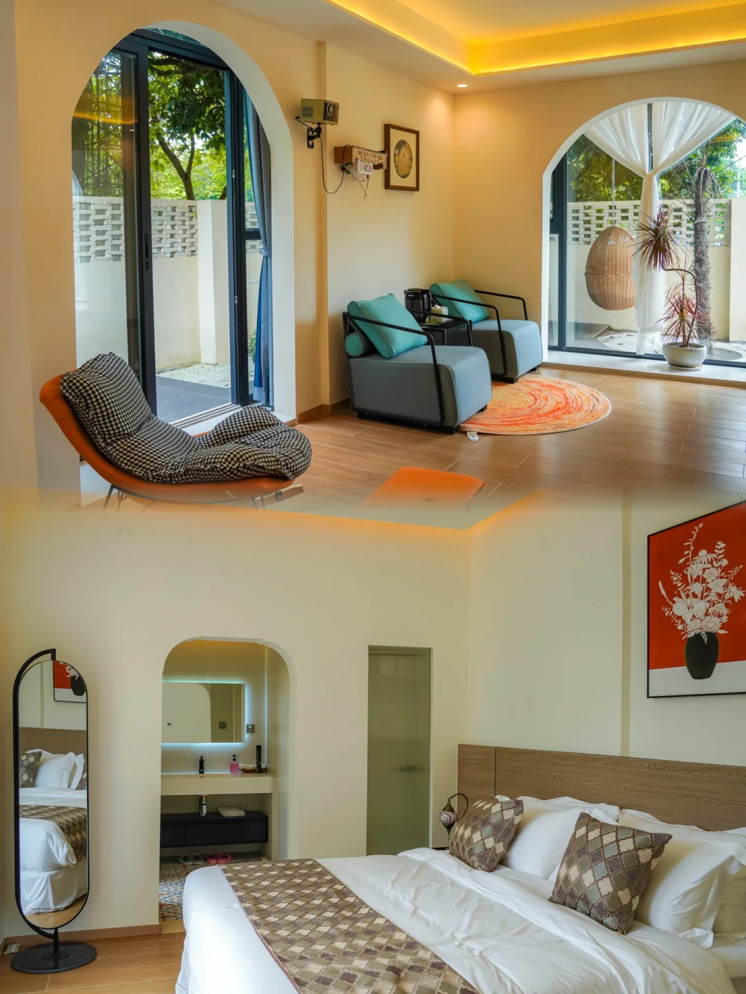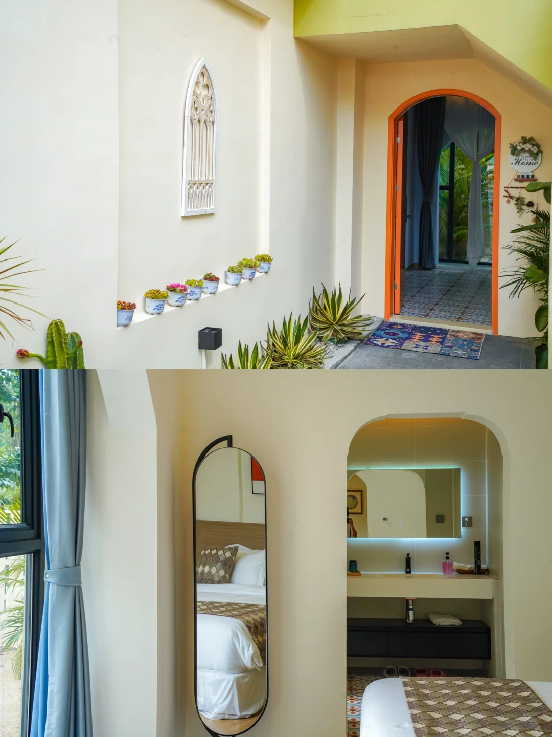 🌟您一进入民宿,便会感觉自己仿佛置身于摩洛哥的长城之中。幢幢淡黄色的小房子围绕着您,各种独出心裁的室内设计立刻让您沉浸于一片摩洛哥风情之中。本次入住的河景别墅房间设计新颖独特,以摩洛哥风为主,配备了独立的露天泡池,让您在炎热的夏季感受到一阵阵的清凉。