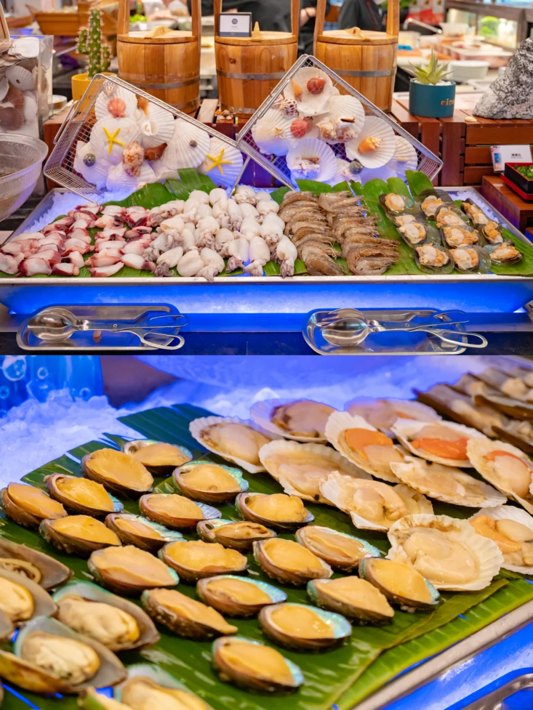 🌟最后当然还是要赞赞这里的美食:我个人口味推荐👉海鲜刺身一定不要放过,不喜欢吃生鲜的可以多吃点“鲜选小火锅”鲜虾和鲍鱼都是我喜欢的。饭后甜品🍰选择也很丰富,蛋糕,雪糕让人甜入心底。