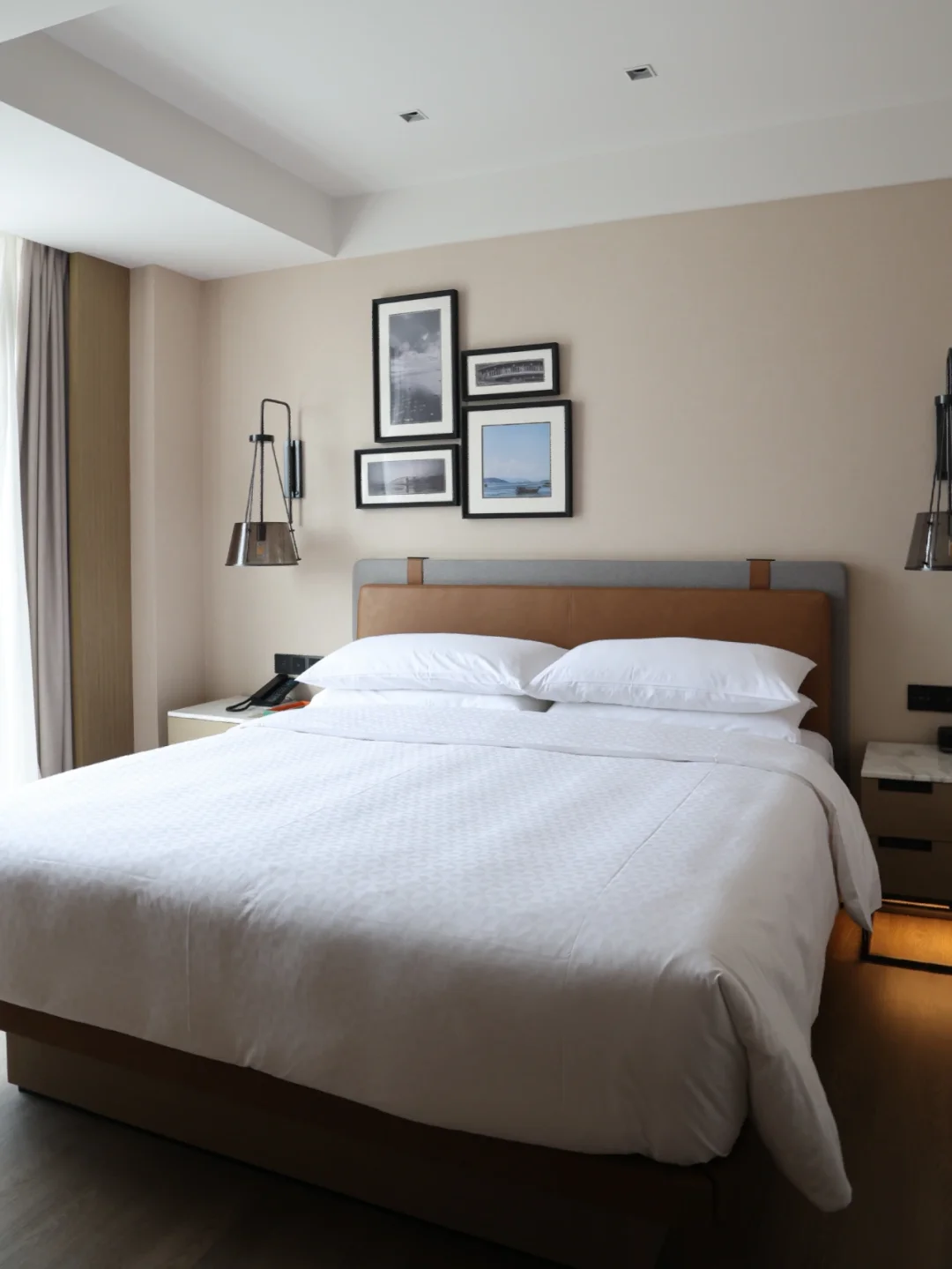 ✨客房内配备福朋喜来登品牌特有“福朋舒适之床”,1.83米的大床宽敞舒适,尽享一夜酣畅睡眠。比较有趣的是酒店设置了智能客服,基本的客房服务需要可语音描述给智能客服,比如:要两瓶水,十分钟后人工客服就会上门满足相应的需求。