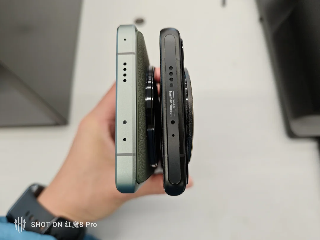 小米13Ultra对比小米12SUltra: 1、可能是余承东说像砖头上放月饼,这次13U镜头没有了方形台阶,徕卡标就放到了摄像头的中间,这次做得漂亮,花粉们应该很喜欢。 2、镜头高度跟12SU半斤八两。。 3、小米13 Ultra没有了哈曼卡顿标。 4、13U边框直边更硬朗了,外观会不会更好看因人而异,但手感刚好了。 5、相机界面改了,长焦滑动变成圆盘,丝滑不卡顿,声音更清脆很爽,我觉得还挺好玩 后面有什么发现再分享