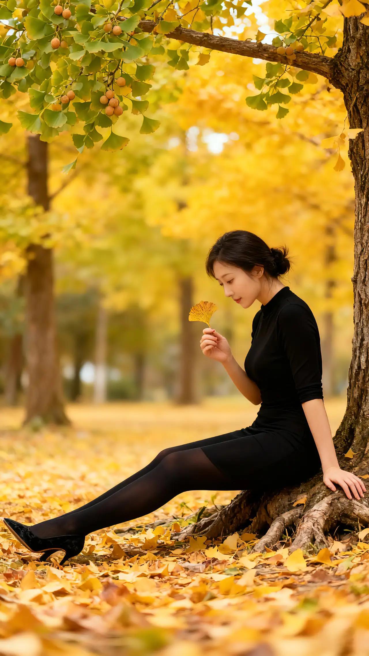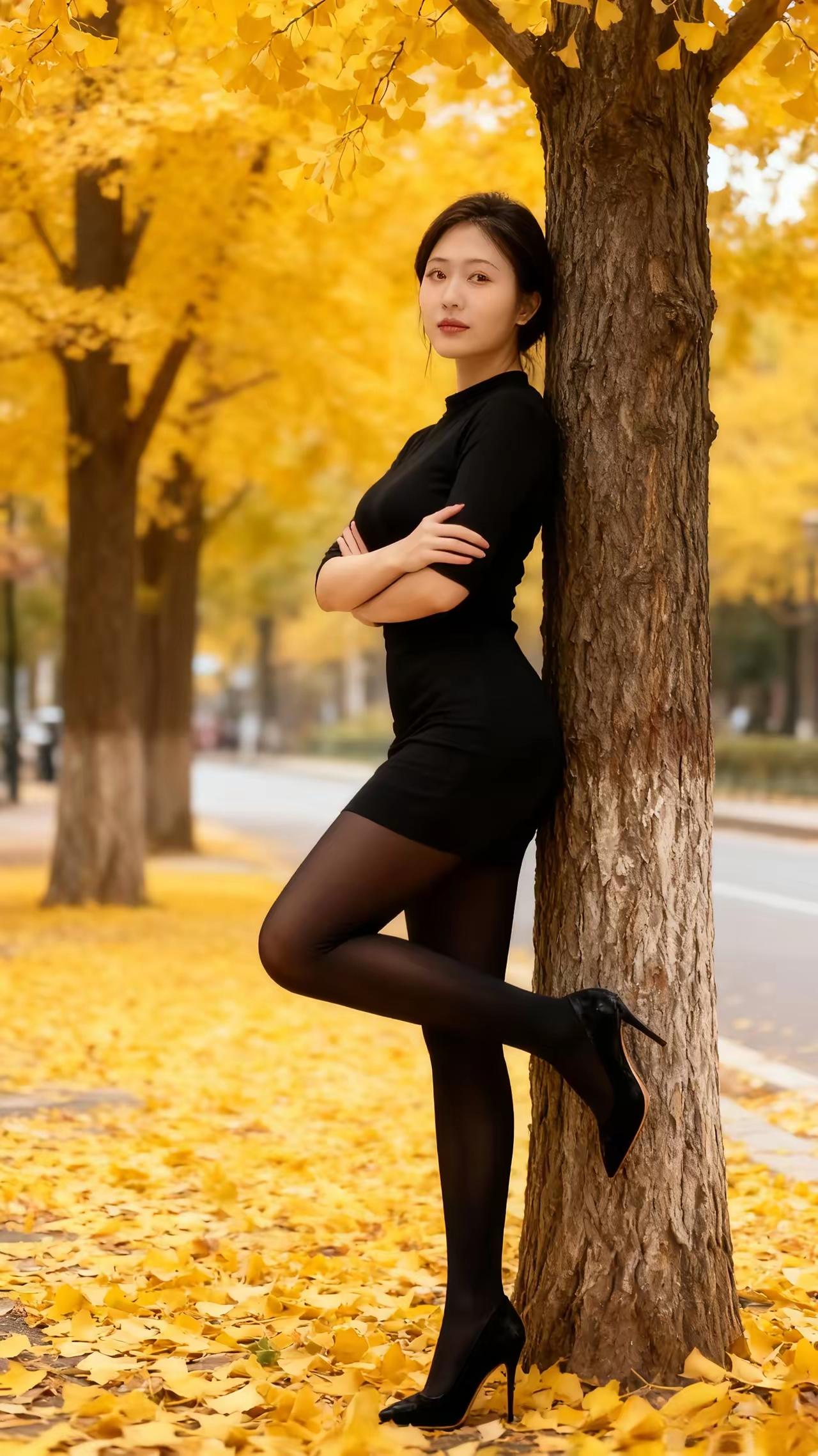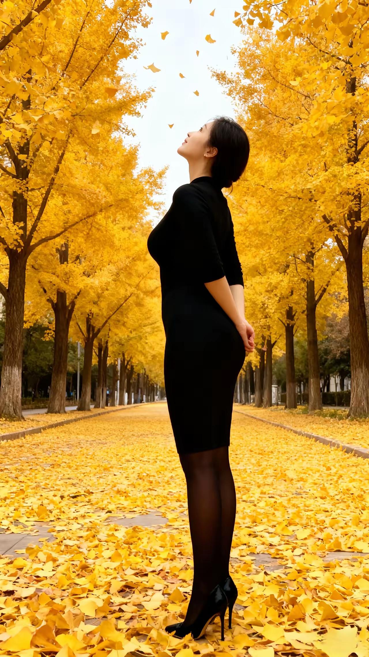 金黄色的银杏叶,优雅高挑漂亮的靓丽美女,好像是一副美丽的画卷!