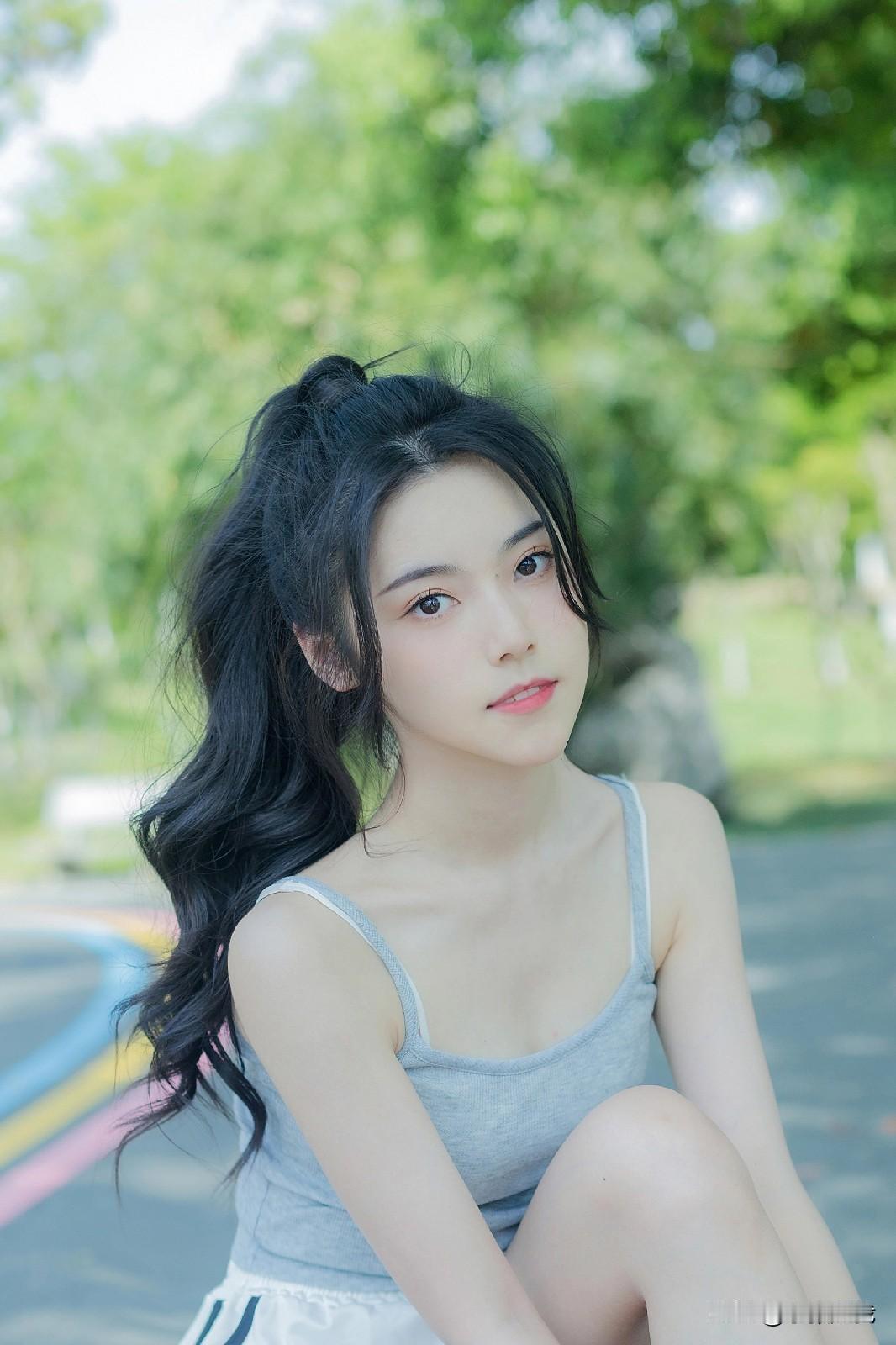 清新美少女 漫步在绿意盎然的林荫之中 甜美笑容 元气满满 伸个懒腰也显得那么楚楚动人 少女感笑容