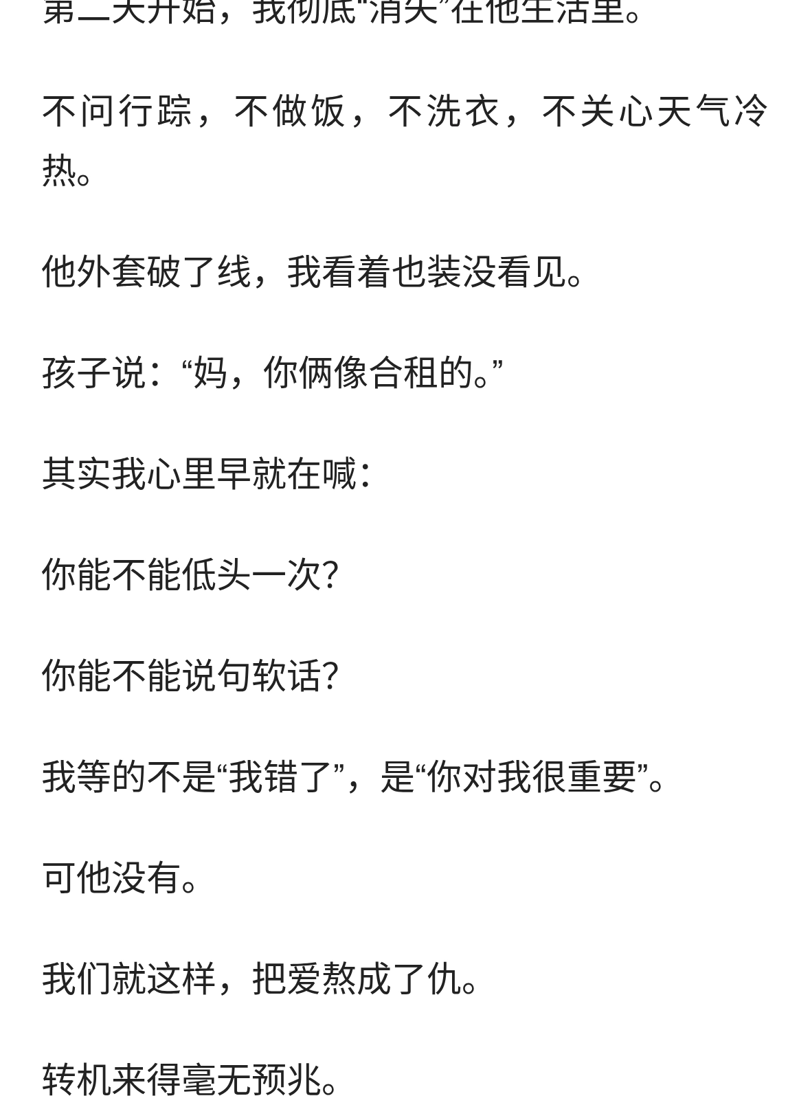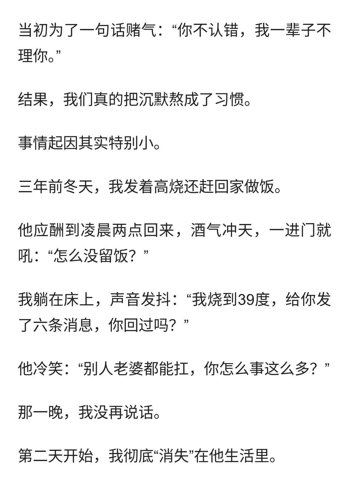 夫妻冷战三年零交流,最狠的和好,从来不是道歉,而是惦记!