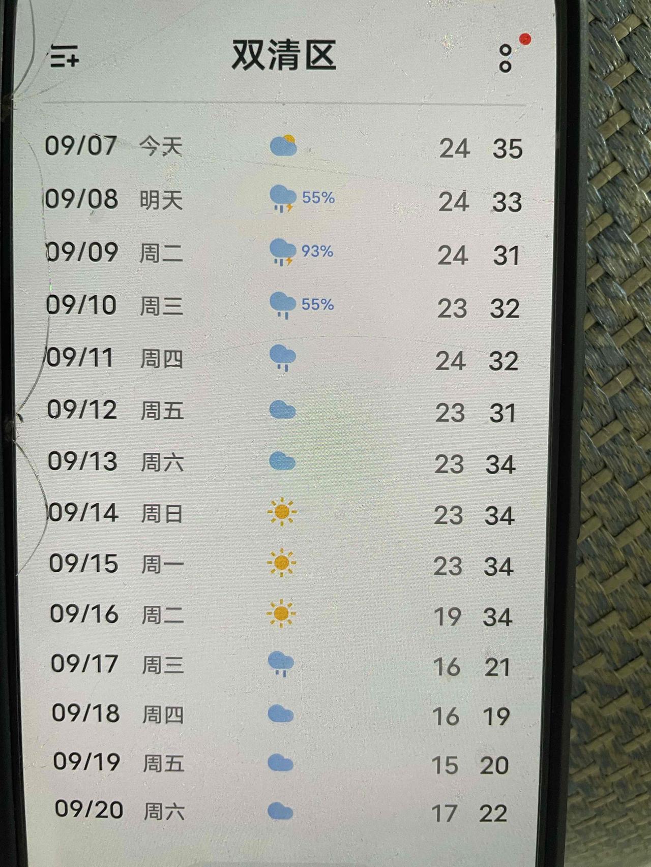 不知道大家有没有同感,我感觉今年的天气特别热又干燥,而且热的时间特别久,现在天天晚上睡觉必须吹空调,都9月7号了,还有33度,据天气预报显示还有10天的酷热。这边是湖南邵阳,友友们,你们那儿有这么热吗?湖南酷热 邵阳温度