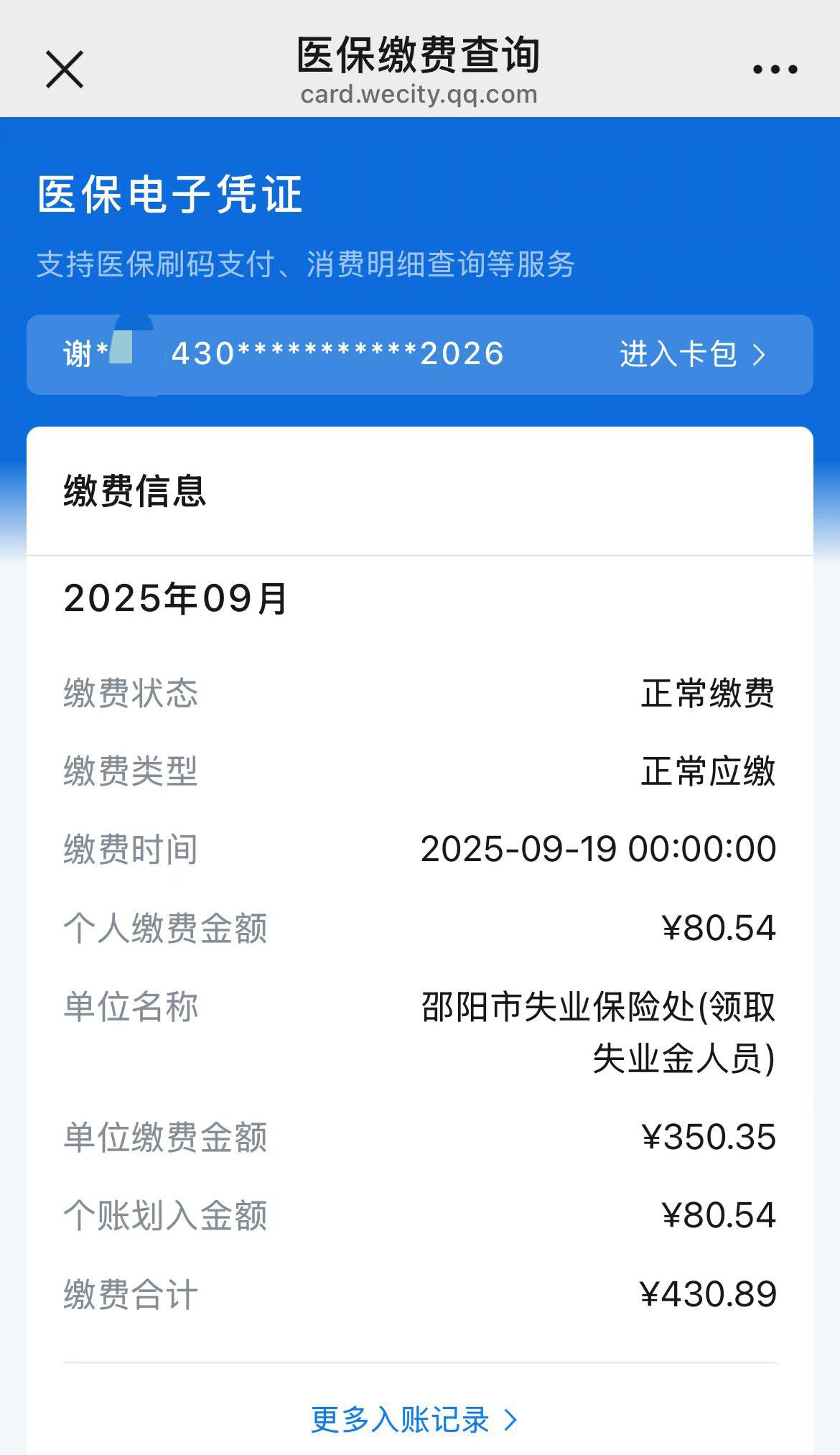 告诉大家一个好消息 邵阳市失业保险金由上个月发放的 1530元,今年9月份开始提高至 1620元了,今天特意查了一下,个人医保每月进账80.54元。真好!有和我一样领取失业保险金的友友吗?高兴吧!😀😀😀