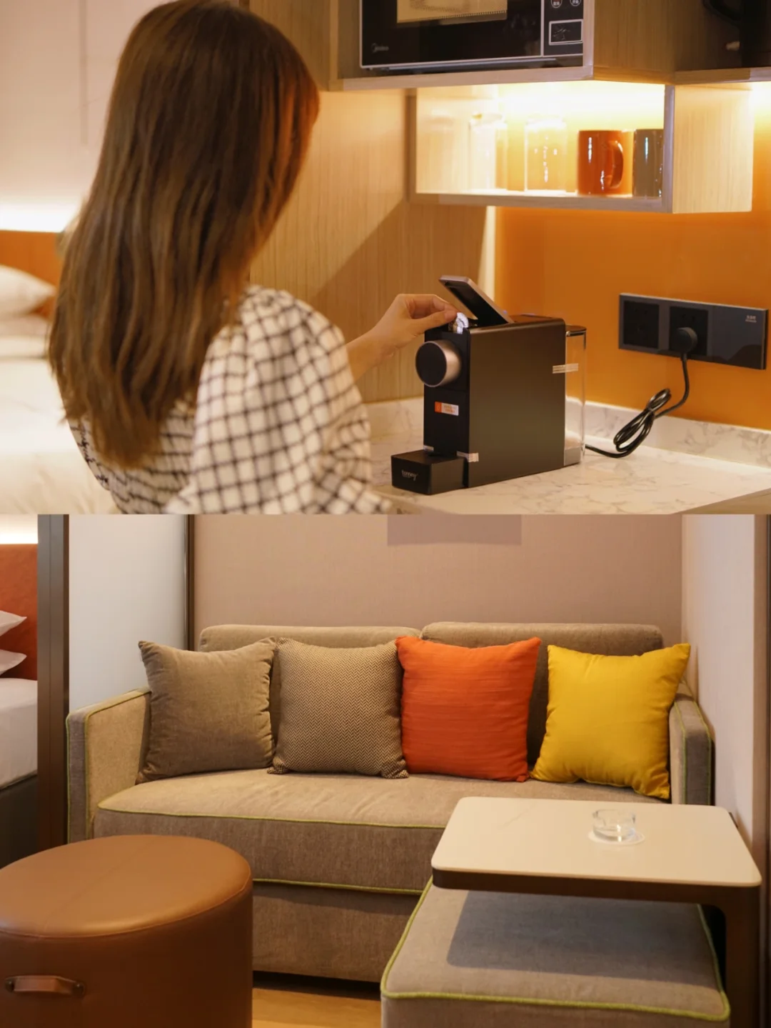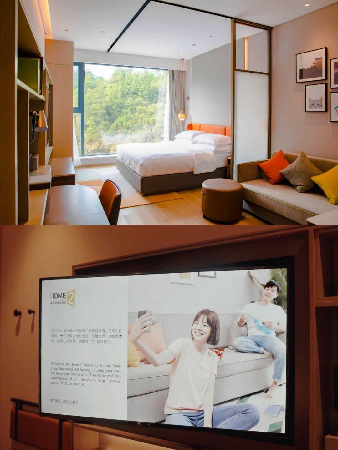 🌟 酒店沿用希尔顿惠庭品牌的灵动理念,可滑动屏风,灵动书桌,可摇臂电视,全景落地窗让房内的空间可折叠可舒展,可根据住客的需要调节室内空间分配。客房内附带微波炉、冰箱、㬵囊咖啡机和⽔槽的⽣活吧,在外自购的食材,可以放在房间冰箱冷藏,想吃的时候又有微波炉加工。