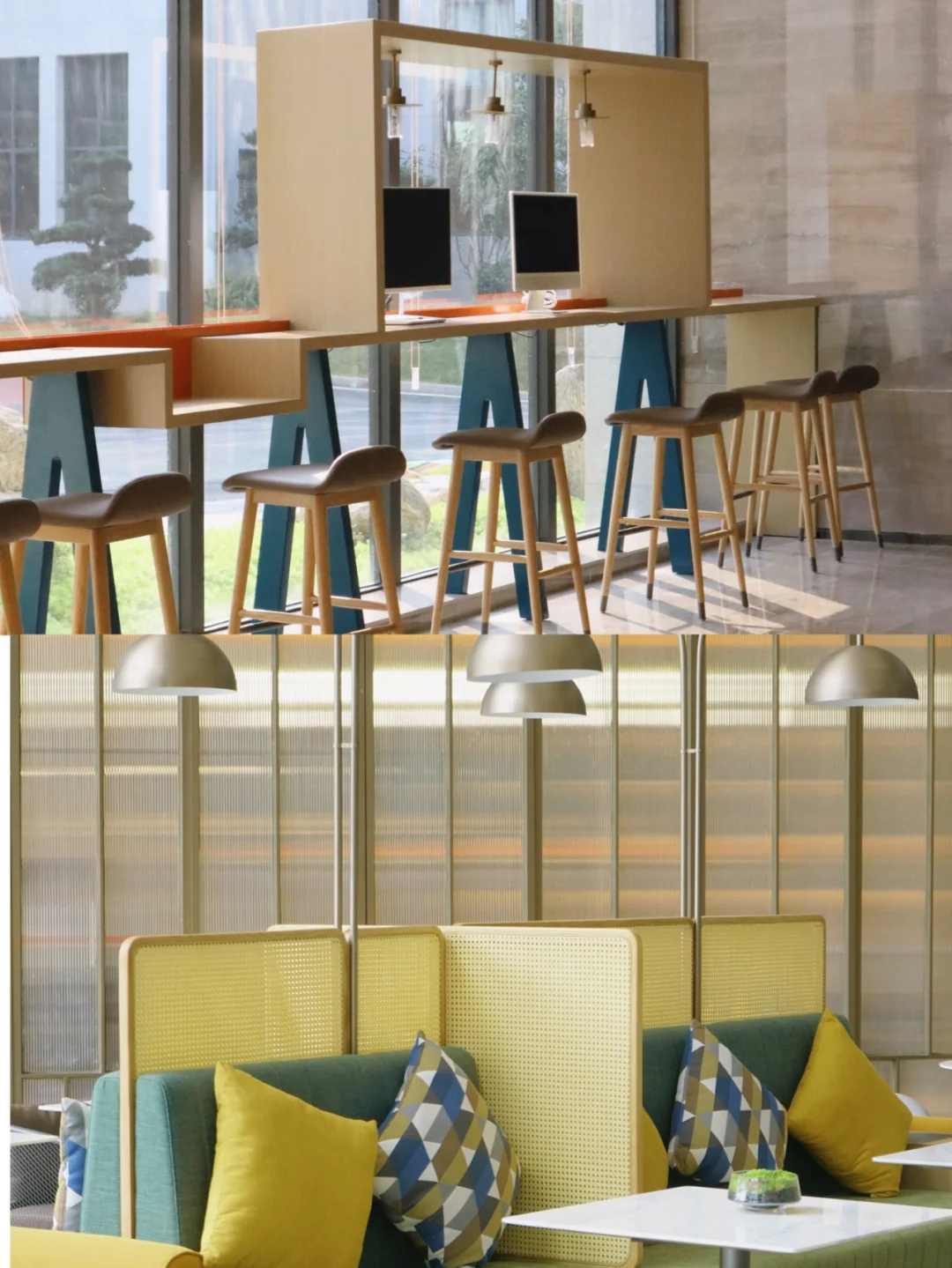 🌟酒店的绿洲大堂采⽤灵活通达的空间设计,温暖又充满活力。绿洲沙发区融合了多种室内设计元素;免费的自助饮吧可以给休闲住客提供全天候咖啡和茶饮;高吧座位区配置打印机和各种充电插头,包括手机无线充电,让客人随心自如的与世界和至爱关联。