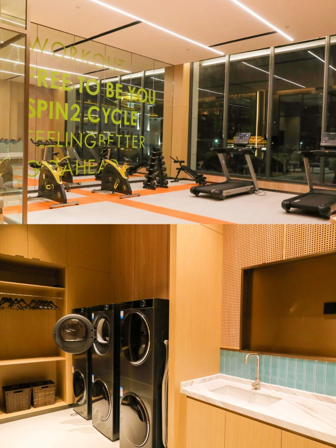 🌟值得一提的是,希尔顿惠庭开创性地将健⾝设施与洗⾐房空间结合,让宾客等待洗⾐的闲暇之余,尽情享受运动的快乐。